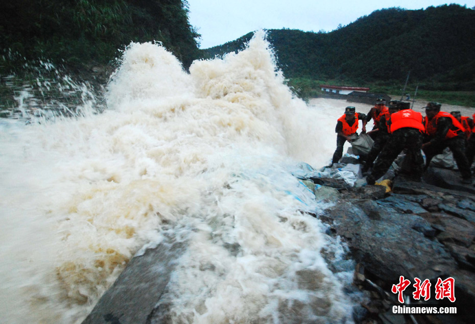 中新網(wǎng)都昌7月14日電(胡國林)14日,受強(qiáng)降雨襲擊,江西九江市都昌大港鎮(zhèn)梅溪水庫水位超過泄洪道1米左右,啟閉設(shè)備出現(xiàn)失靈,洪水如猛獸般狂瀉入下,部分村莊和數(shù)千畝農(nóng)田被淹。 險(xiǎn)情發(fā)生后,當(dāng)?shù)胤姥床块T立即組織抗洪搶險(xiǎn)突擊隊(duì),武警官兵和當(dāng)?shù)厝罕娒爸kU(xiǎn),拋石加固堤壩,防止洪庫潰堤,下游數(shù)千名村民已被安全轉(zhuǎn)移。