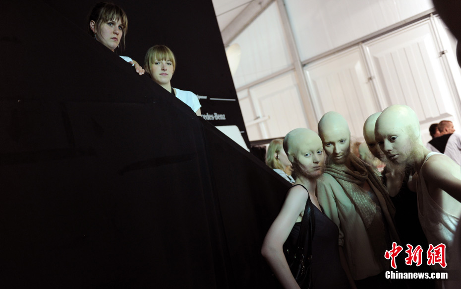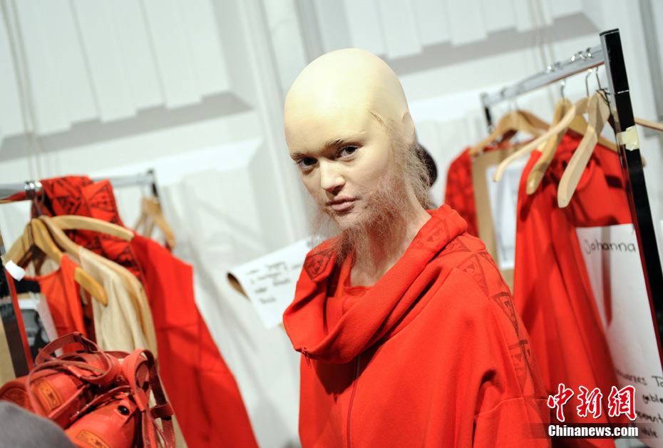 時(shí)尚可以美到讓人窒息,也可以雷人到讓人無(wú)語(yǔ)……柏林時(shí)裝周上,設(shè)計(jì)師Patrick Mohr引入了新的審美觀,美麗的女模特們一律是光頭和張飛一般的胡須造型,非常之震撼!