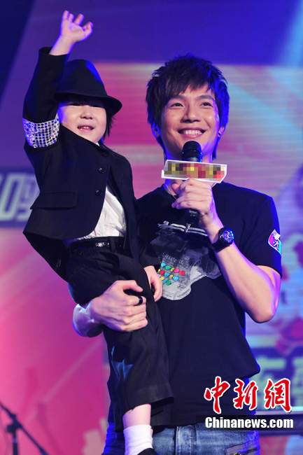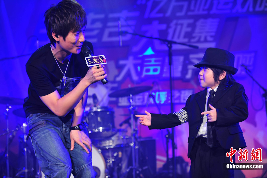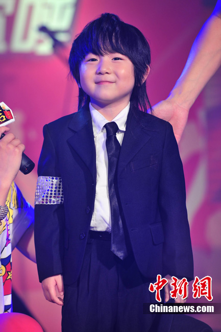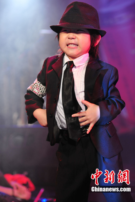 7月18日晚,陳楚生北京歌友會勁爆上演。4歲的街舞神童“小寶”王一鳴現(xiàn)場為陳楚生助陣!靶殹蹦昙o雖小,卻是位舞蹈天才,曾得到MJ舞蹈老師的肯定。他模仿MJ的經(jīng)典舞步熱翻全場,贏得現(xiàn)場粉絲陣陣尖叫,風頭大有蓋過陳楚生之意!靶殹斌@人的舞蹈技藝也讓陳楚生大呼佩服。圖為小寶模仿起MJ像模像樣,舞技超群。中新社記者 李學仕 攝