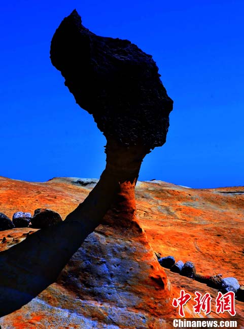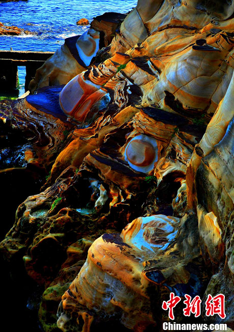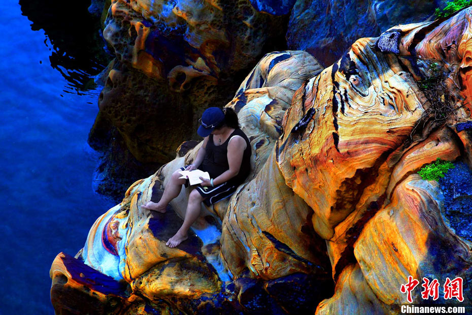 進(jìn)入7月中下旬的臺(tái)灣野柳地質(zhì)公園旅游區(qū)游人大增,觀光客游趣濃厚的野柳地質(zhì)公園是一處突出海面的岬角,受海浪侵蝕、巖石風(fēng)化等作用,形成蜂窩巖、菌狀巖、姜狀巖、臘燭臺(tái)等各種各樣的奇特景觀。中新社記者 宋吉河 攝