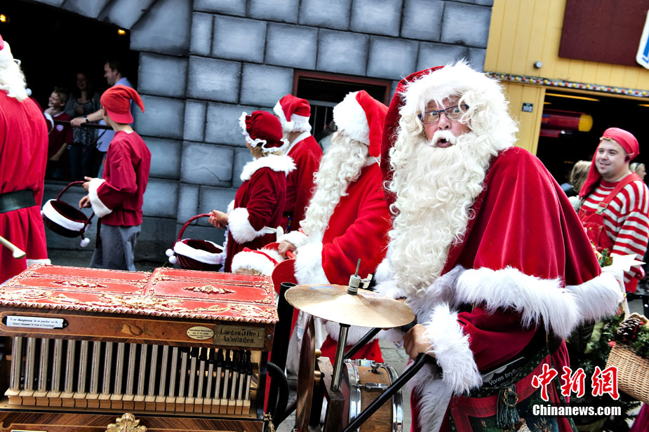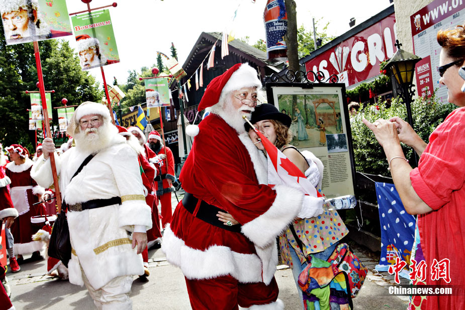 7月19日,丹麥?zhǔn)锥几绫竟,?lái)自世界各地的圣誕老人舉行游行,慶祝一年一度的世界圣誕老人大會(huì)。當(dāng)天,120多名來(lái)自世界各地的圣誕老人齊聚哥本哈根。