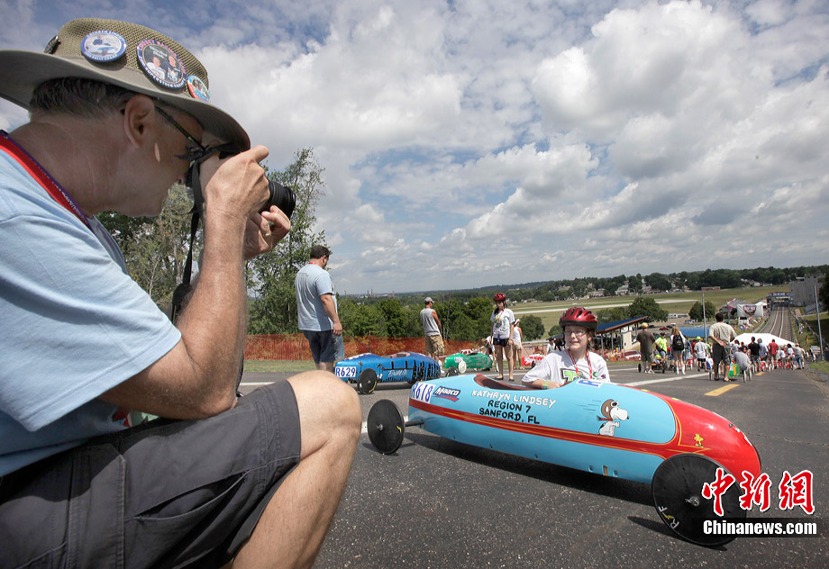 當?shù)貢r間7月21日,美國俄亥俄州舉行了第73屆全美“肥皂盒”小車大賽。來自美國各地以及加拿大、日本、德國和新西蘭的約500名車手攜帶自己的愛車參賽!胺试砗小毙≤嚊]有任何動力裝置,其主要設計目標是減少空氣阻力和摩擦力,以便讓小車的速度達到最高。