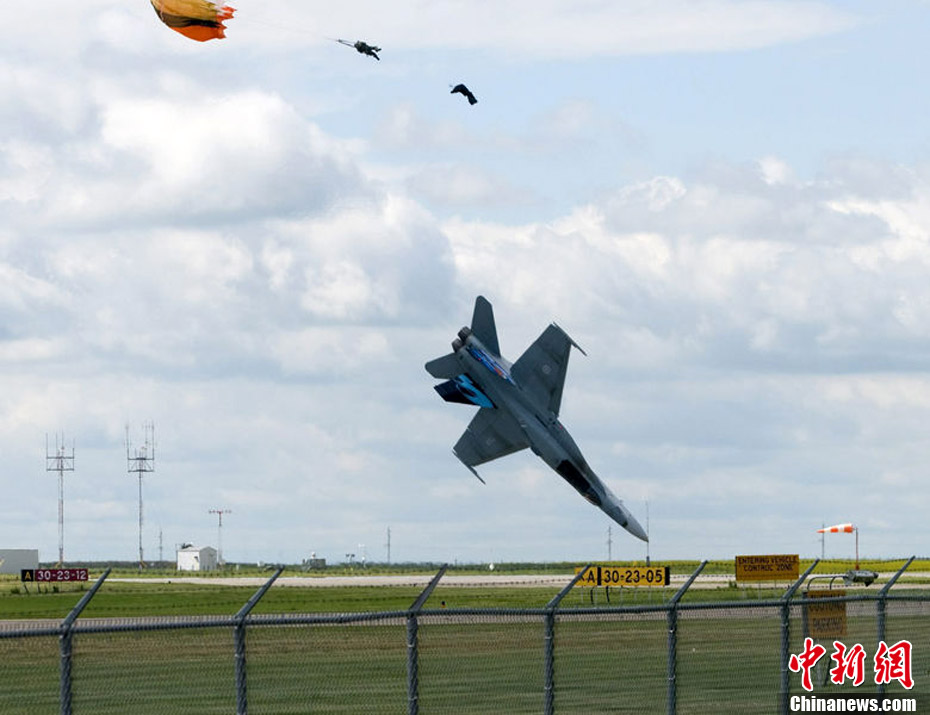 7月23日,在加拿大阿爾伯塔萊斯布里奇機場,F(xiàn)/A-18C戰(zhàn)斗機飛行員彈射逃生。飛行員已被送到當(dāng)?shù)匾患裔t(yī)院,是否受傷尚不清楚。事故原因正在調(diào)查中。圖為戰(zhàn)機墜地爆炸瞬間。