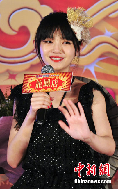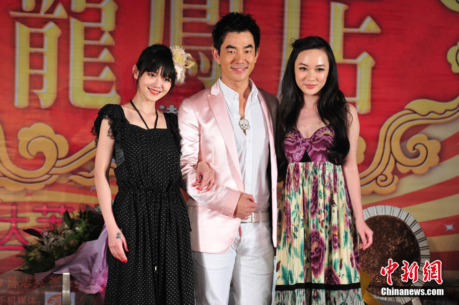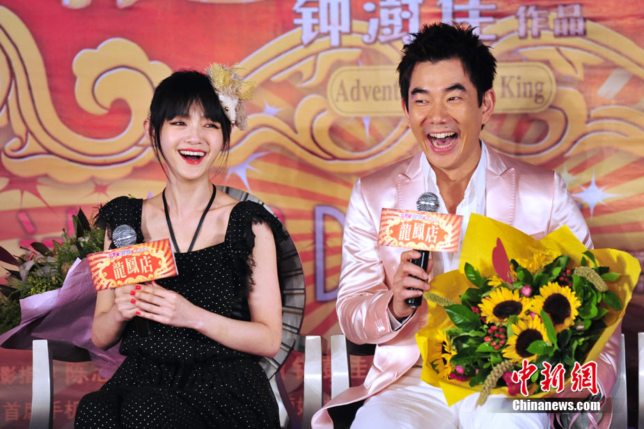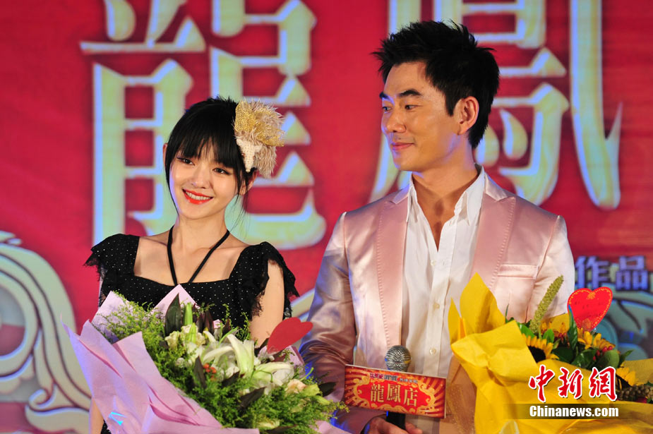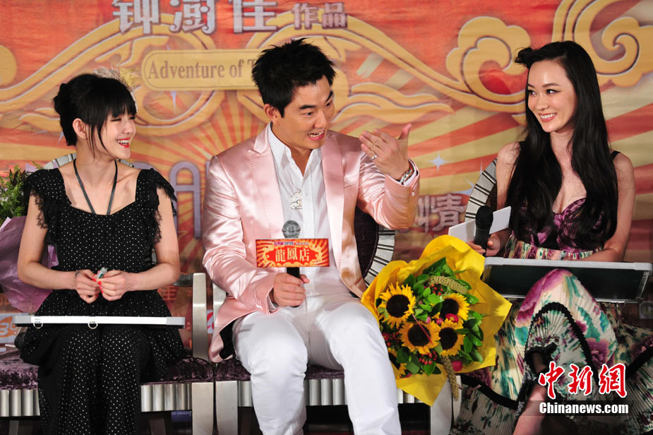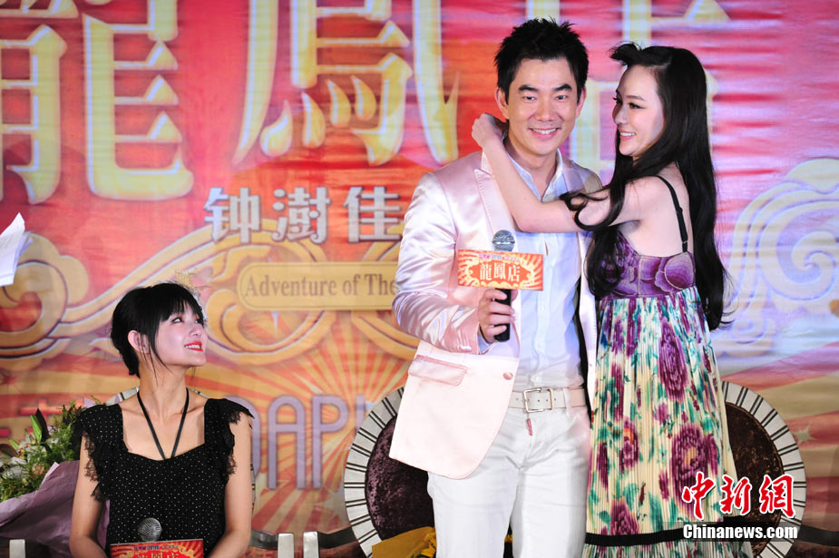 7月30日,古裝愛(ài)情喜劇《龍鳳店》在京舉辦官網(wǎng)啟動(dòng)暨終極海報(bào)揭幕發(fā)布會(huì),導(dǎo)演鐘澍佳攜主演任賢齊、大S、霍思燕亮相,臺(tái)灣著名音樂(lè)人小蟲(chóng)前來(lái)助陣。大S頭戴“刺猬”發(fā)卡可愛(ài)亮相,與任賢齊在現(xiàn)場(chǎng)大談對(duì)唱《龍鳳店》主題曲的感受,大S笑稱唱歌比小S好聽(tīng)。后來(lái)登臺(tái)的霍思燕卻大搶大S風(fēng)頭,她為任賢齊親手戴上禮物項(xiàng)鏈,還親密擁抱久久對(duì)視,兩人在現(xiàn)場(chǎng)大秀親昵立刻成為眾人矚目焦點(diǎn),讓大S在一旁有點(diǎn)沒(méi)事做。中新社記者 李學(xué)仕攝