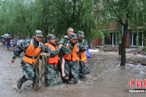 從7月31日吉林通化市內全部供水管線被洪水沖毀到現在,33萬居民斷水時間已經超過60小時。 8月3日通化市派出消防車輛給居民運送生活用水的工作仍將繼續(xù),時間有望從早5點到晚六點延長到晚8點,送水量也不會少于180臺次、1700噸水。同時,當地衛(wèi)生防疫部門對使用自用水的飯店進行了嚴格監(jiān)督、檢查和登記,目前,沒有發(fā)現水質問題,也沒有食物中毒現象發(fā)生。中新社發(fā) 王孝偉 攝 來源:CNSPHOTO