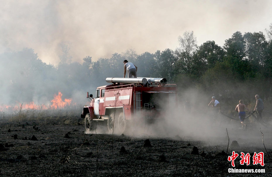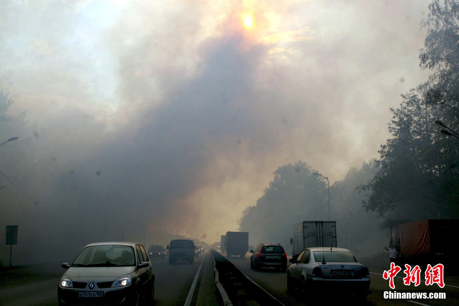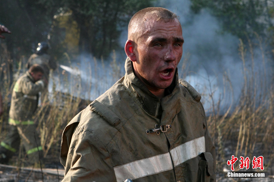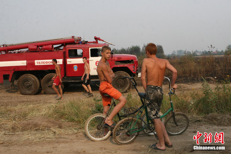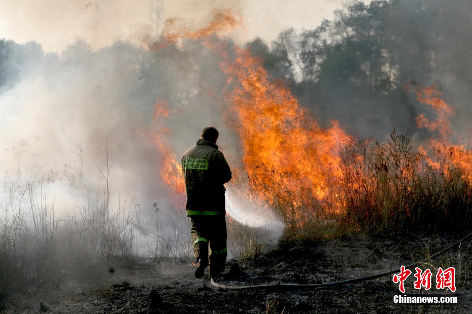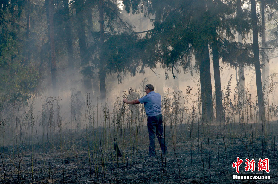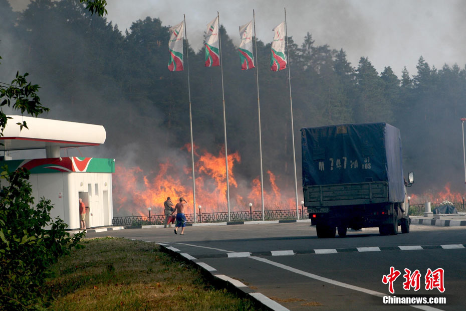 8月5日,在距離莫斯科市區(qū)僅15公里處的一家加油站附近突然燃起森林大火,情勢非常危急。當?shù)孛癖娮园l(fā)與消防人員全力滅火。中新社發(fā) 田冰 攝