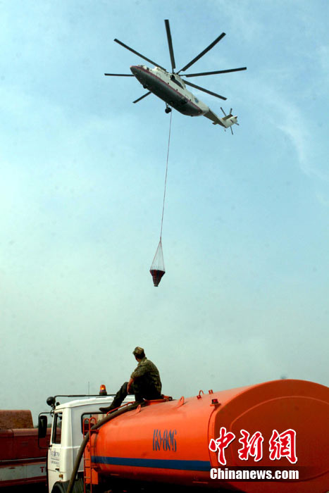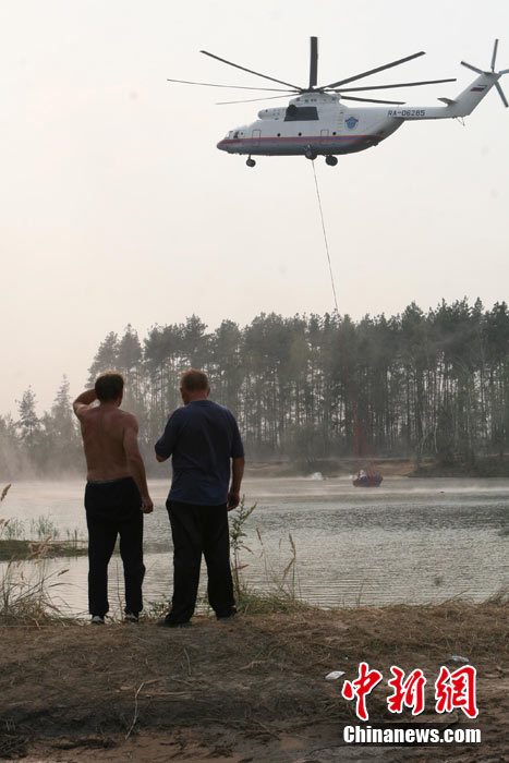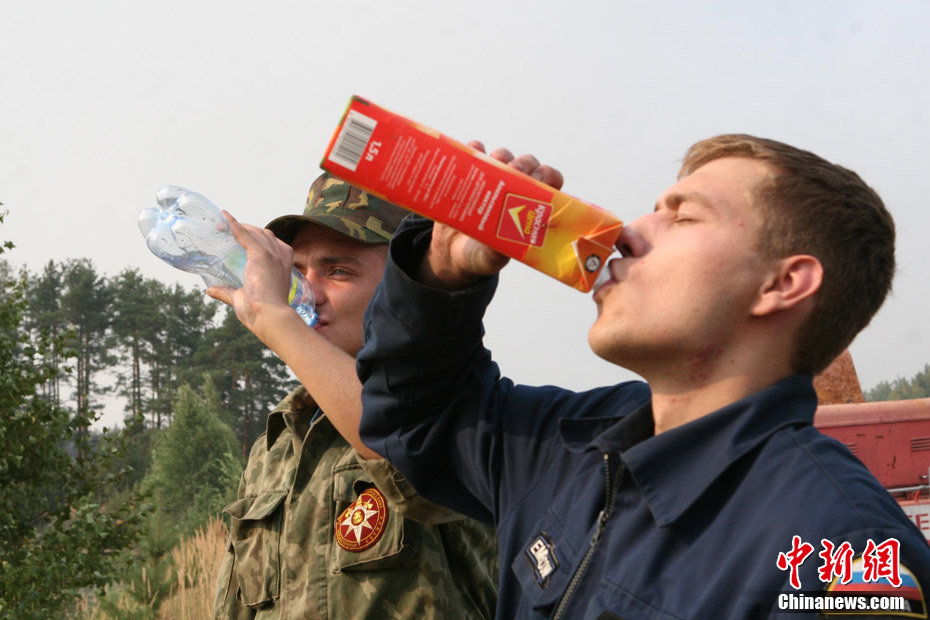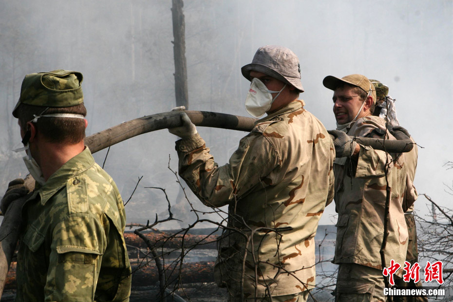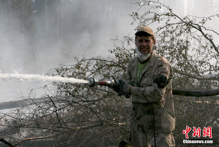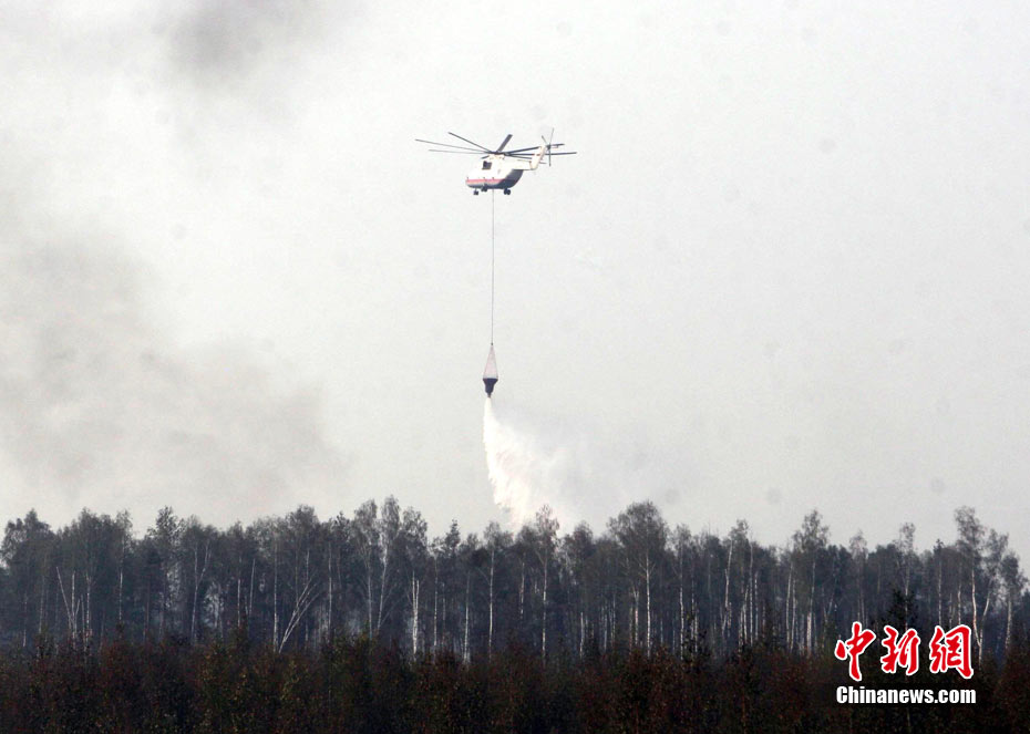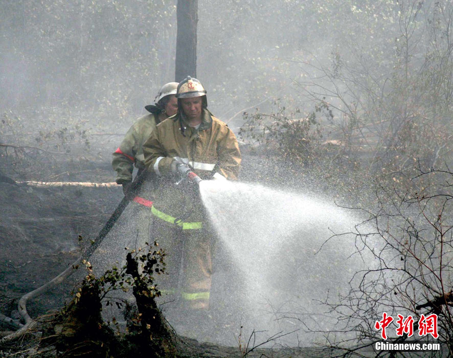 8月5日,在距離莫斯科市區(qū)僅15公里處的一家加油站附近突然燃起森林大火,情勢非常危急。當?shù)孛癖娮园l(fā)與消防人員全力滅火。中新社發(fā) 田冰 攝