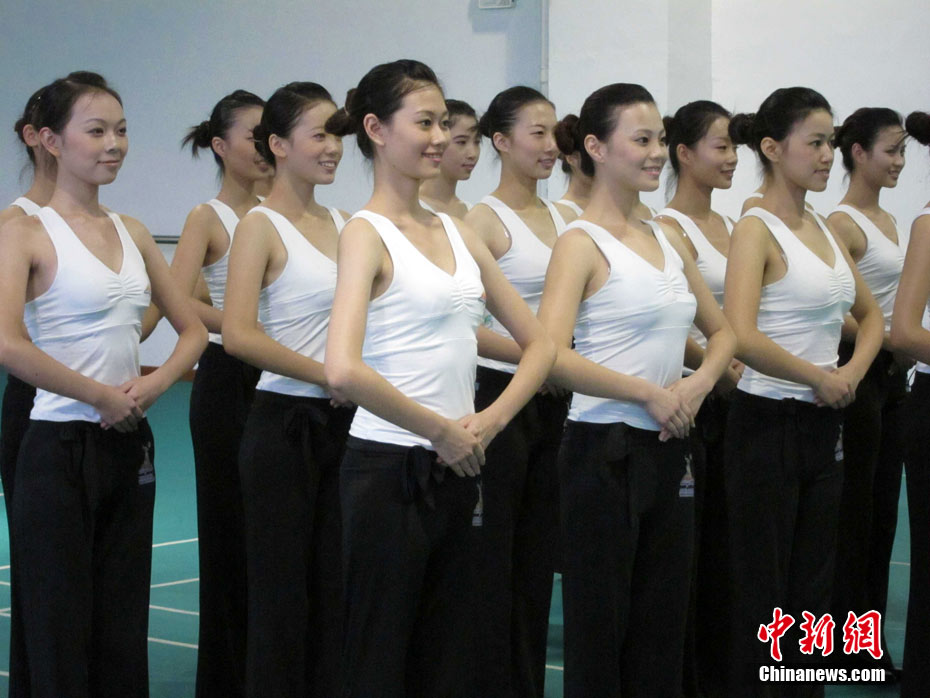 日前,500多位來自全國各地的“亞運天使”在南方醫(yī)科大學順德校區(qū)校園中,為亞運賽場上的精彩亮相緊張辛苦的訓練。廣州亞運會期間,頒獎禮儀團隊將完成476場頒獎儀式,合計頒發(fā)3989枚獎牌。中新社發(fā) 柯小軍 攝