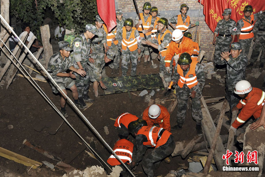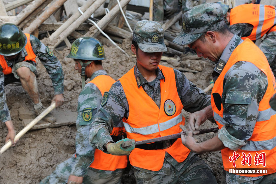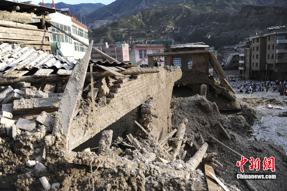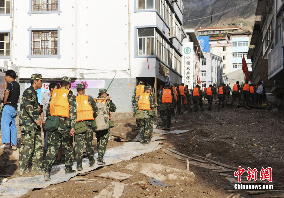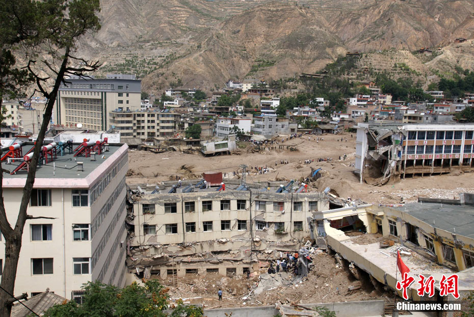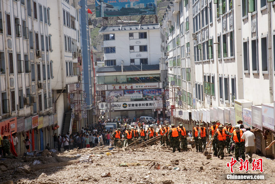 8月8日凌晨,甘肅省舟曲縣因強降雨引發(fā)滑坡泥石流,造成重大人員傷亡,電力、交通、通訊中斷。目前,遇難人數(shù)上升至127人,國家減災(zāi)委、民政部將國家救災(zāi)應(yīng)急響應(yīng)等級提升至二級。武警部隊迅速調(diào)集武警甘肅總隊和駐甘肅、四川森林、水電、交通部隊共2100余名官兵趕赴災(zāi)區(qū),展開生命大救援。圖為災(zāi)難現(xiàn)場。中新社發(fā) 王金朝 攝 圖片來源:CNSPHOTO