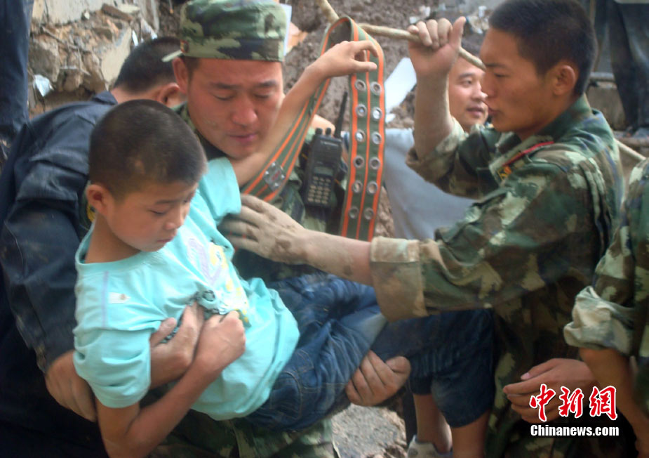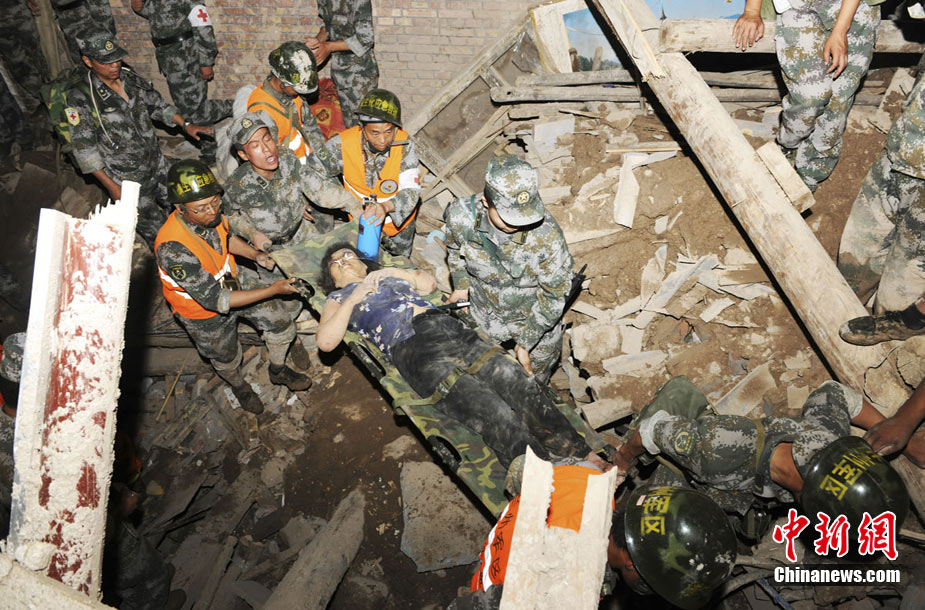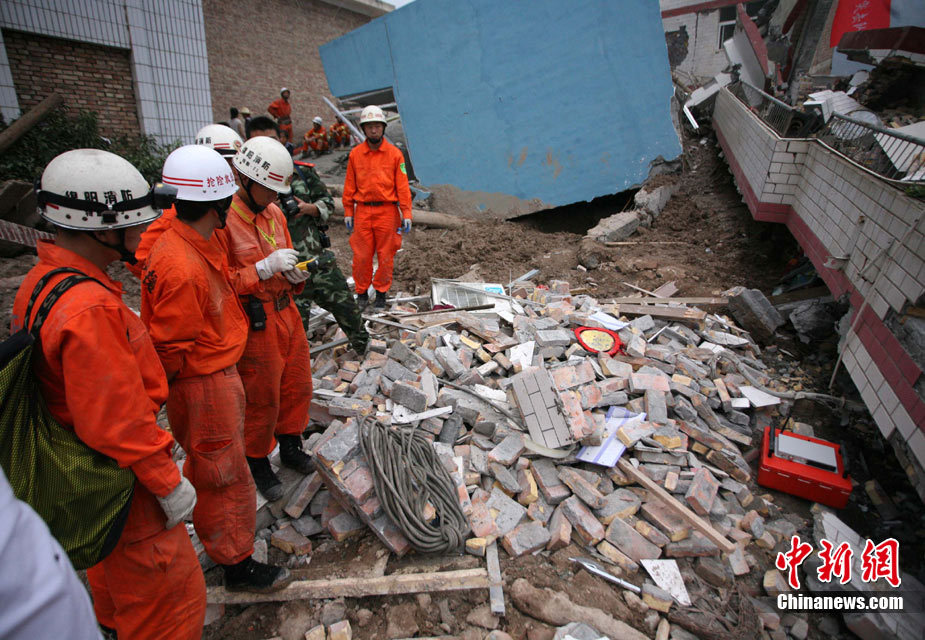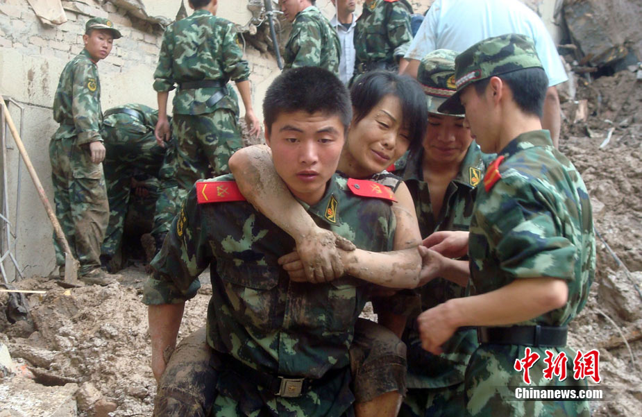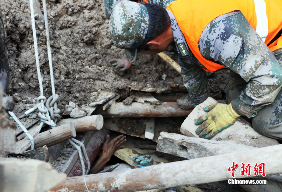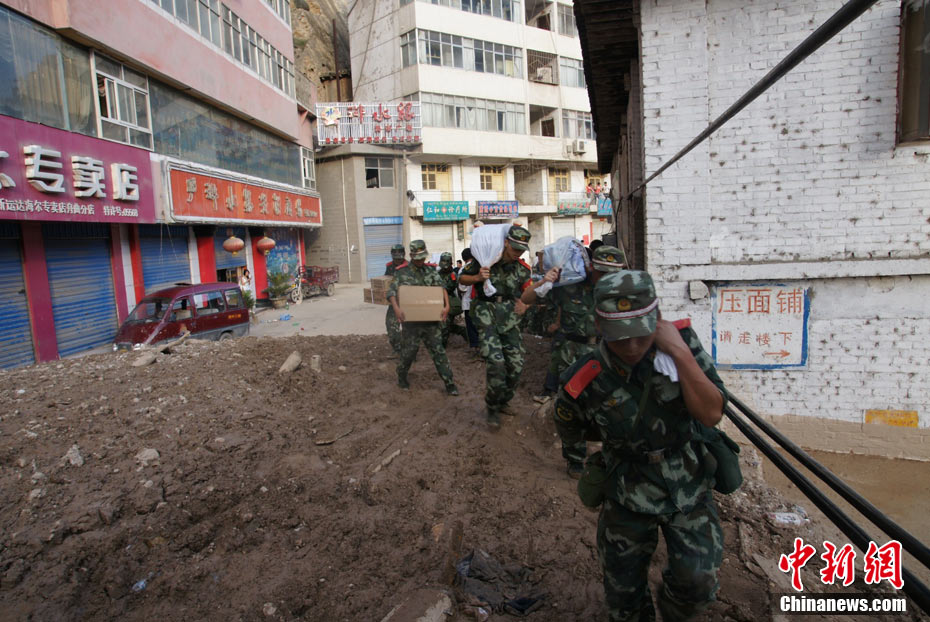 8月8日凌晨,甘肅省舟曲縣因強降雨引發(fā)滑坡泥石流,造成重大人員傷亡,電力、交通、通訊中斷。目前,遇難人數(shù)上升至127人,國家減災(zāi)委、民政部將國家救災(zāi)應(yīng)急響應(yīng)等級提升至二級。武警部隊迅速調(diào)集武警甘肅總隊和駐甘肅、四川森林、水電、交通部隊共2100余名官兵趕赴災(zāi)區(qū),展開生命大救援。圖為災(zāi)難現(xiàn)場。中新社發(fā) 王金朝 攝 圖片來源:CNSPHOTO