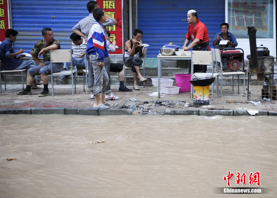 舟曲縣城內(nèi)被泥石流沖毀的建筑。中新網(wǎng)記者 金碩 攝