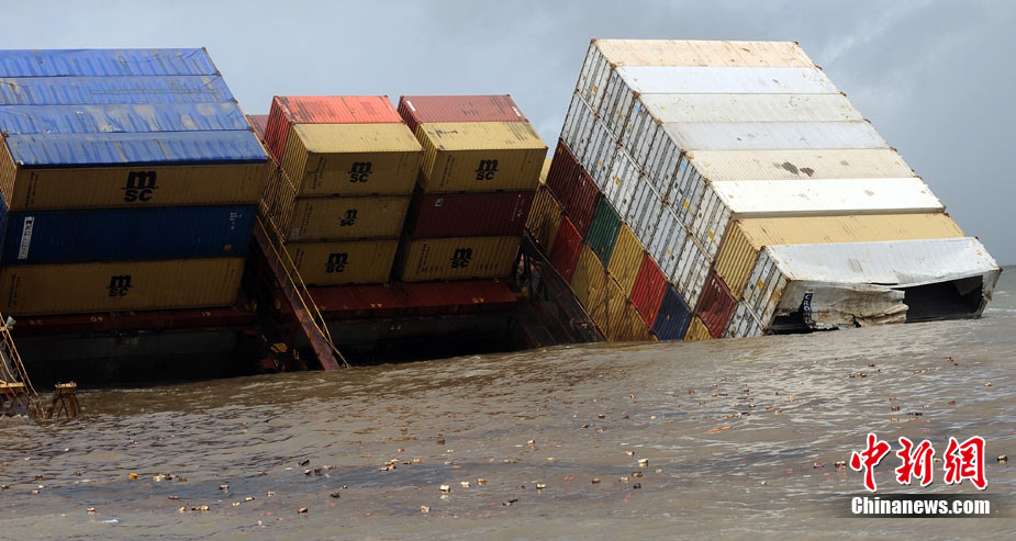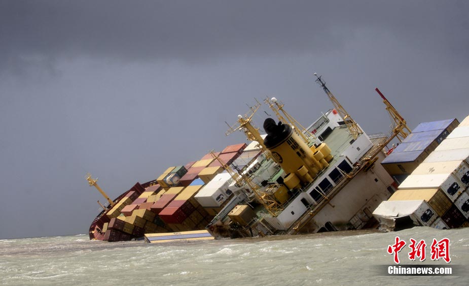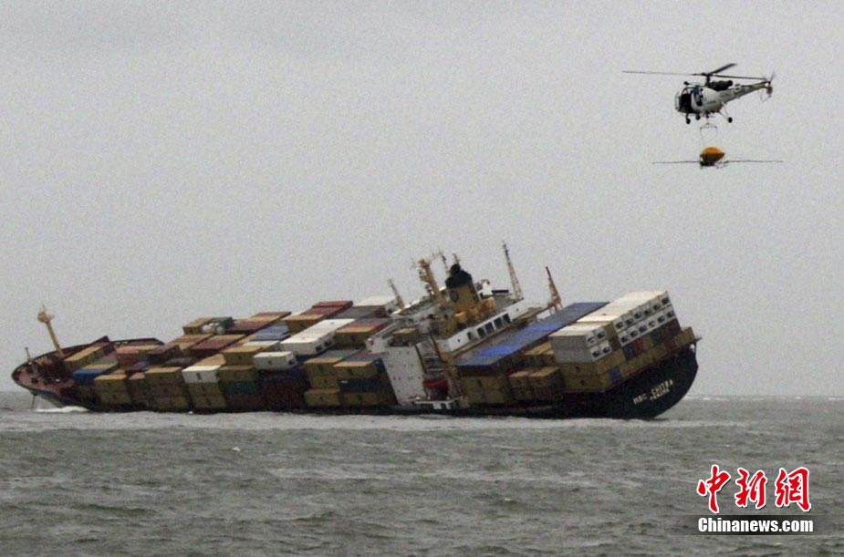 近日,一艘油輪與一艘船只在孟買附近海域相撞,造成兩艘船船身受損,油輪上所載約200只油桶落入海中,造成原油泄漏。圖為8月10日,印度官方提供的油輪傾倒的圖片。