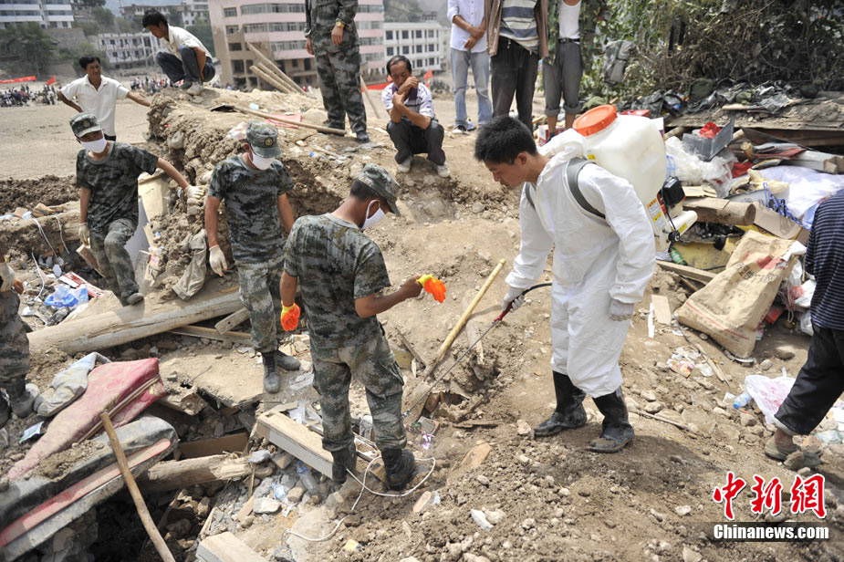 醫(yī)療隊舟曲災區(qū)進行防疫消毒