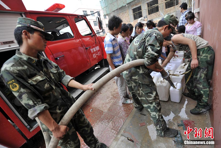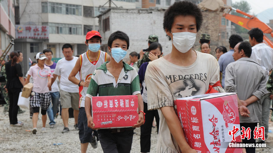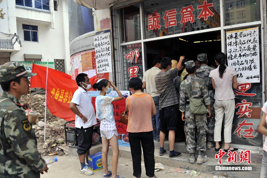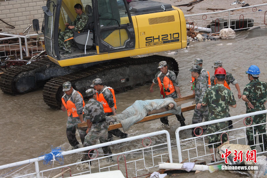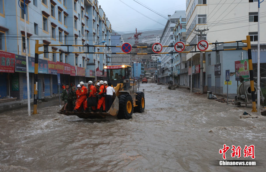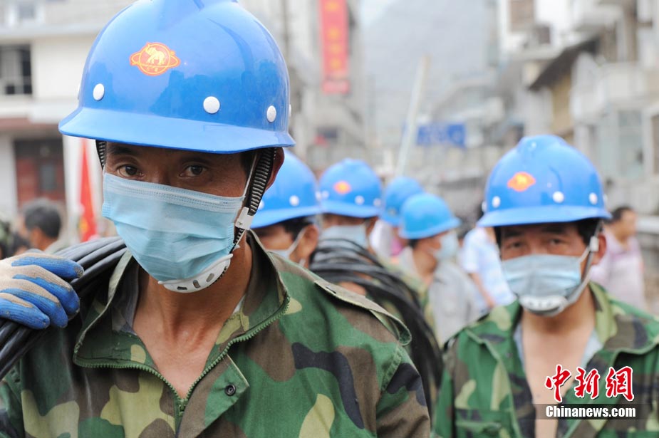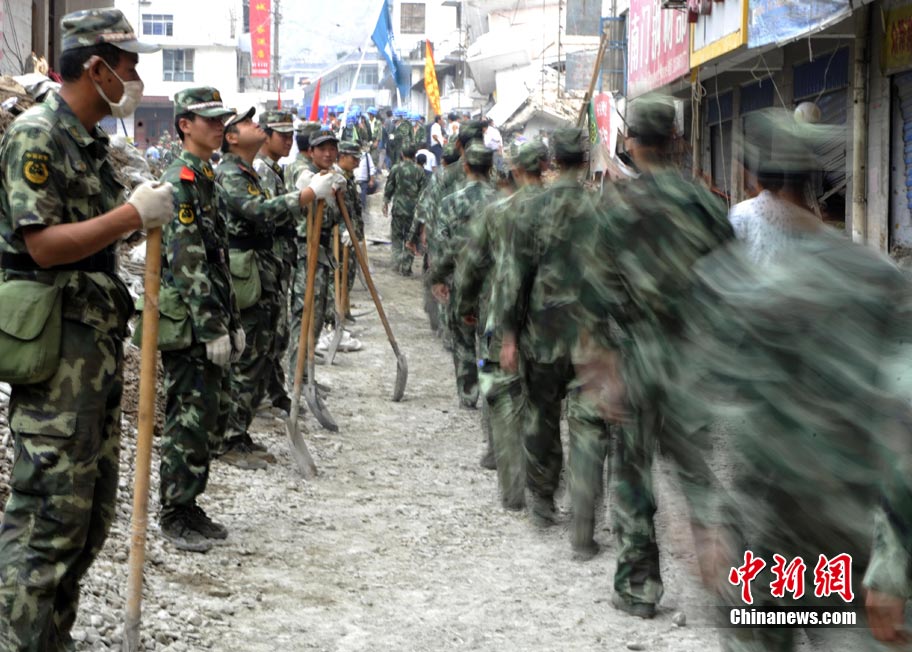8月11日上午9時(shí)40分,蘭州軍區(qū)某集團(tuán)軍“開山斧工兵團(tuán)”對(duì)舟曲堰塞湖堰塞體成功實(shí)施第12次爆破。爆破后河道明顯出現(xiàn)斜坡,江水下泄速度明顯加快。圖為堰塞體12次爆破現(xiàn)場。中新社發(fā) 劉忠俊 攝
