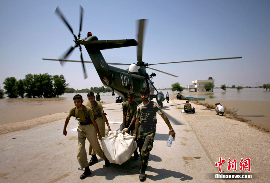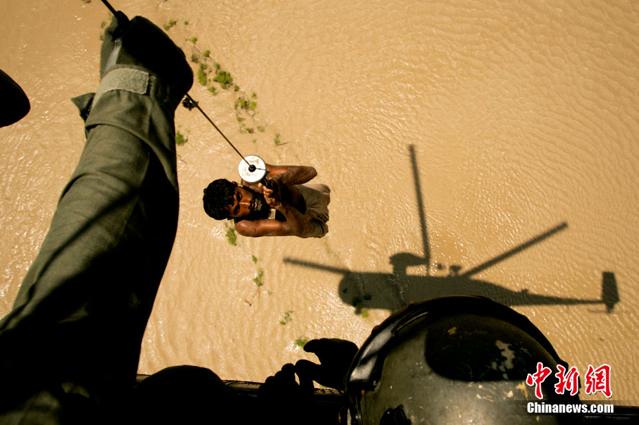 8月11日,巴基斯坦,洪水進入信德省中部,一位災(zāi)民被救上直升飛機。7月下旬以來,巴基斯坦遭遇自1929年以來最嚴重的洪澇災(zāi)害。據(jù)估計,洪災(zāi)影響到該國從北到南的廣大區(qū)域,已導(dǎo)致1200多人喪生,1400多萬人受到影響。
