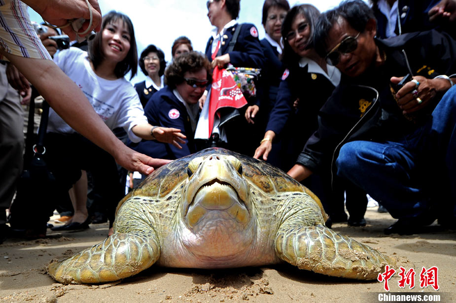 12日是泰國王后詩麗吉的78歲生日,泰國各地紛紛舉行活動慶祝王后生日。圖為一家海龜保護(hù)中心,專門舉行活動將700多只海龜放歸海洋,為慶祝泰國王后生日。