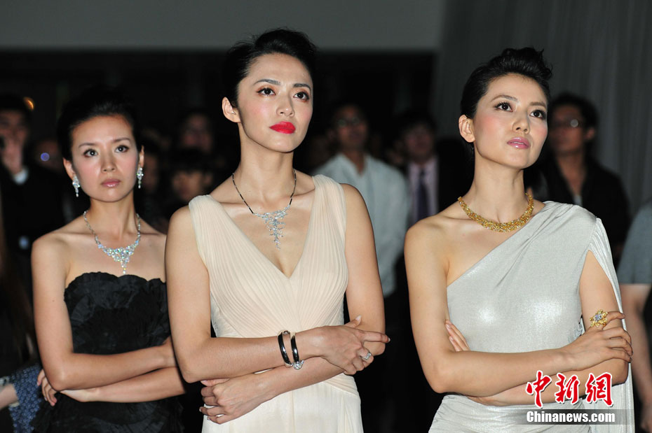 8月12日晚,永恒印記“Shining Light”鉆飾設(shè)計(jì)大賽獲獎(jiǎng)作品全球首展在北京舉行。30位來自南部非洲的年輕設(shè)計(jì)師以25000顆總重達(dá)630克拉的美鉆向世界展示了他們?cè)阢@石設(shè)計(jì)領(lǐng)域的極致才華。姚晨(中)、高圓圓(右)、董潔等藝人盛裝前來助陣。中新社發(fā) 李學(xué)仕 攝