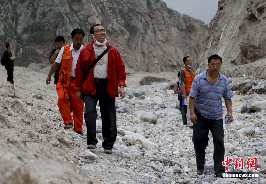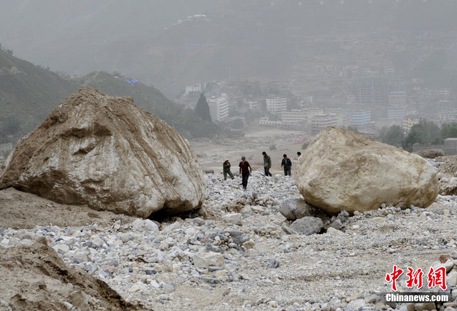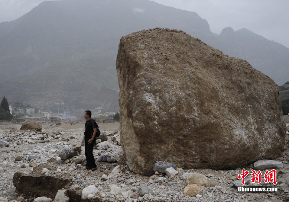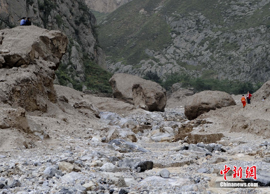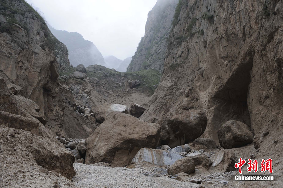 8月13日,甘肅舟曲泥石流災(zāi)區(qū)上源小眼峪垮下的巨大山石。在大眼峪和小眼峪有四道被稱作“谷坊壩”的四道防泥石流堤壩,在這次災(zāi)害中全部被沖毀。中新社發(fā) 廖攀 攝