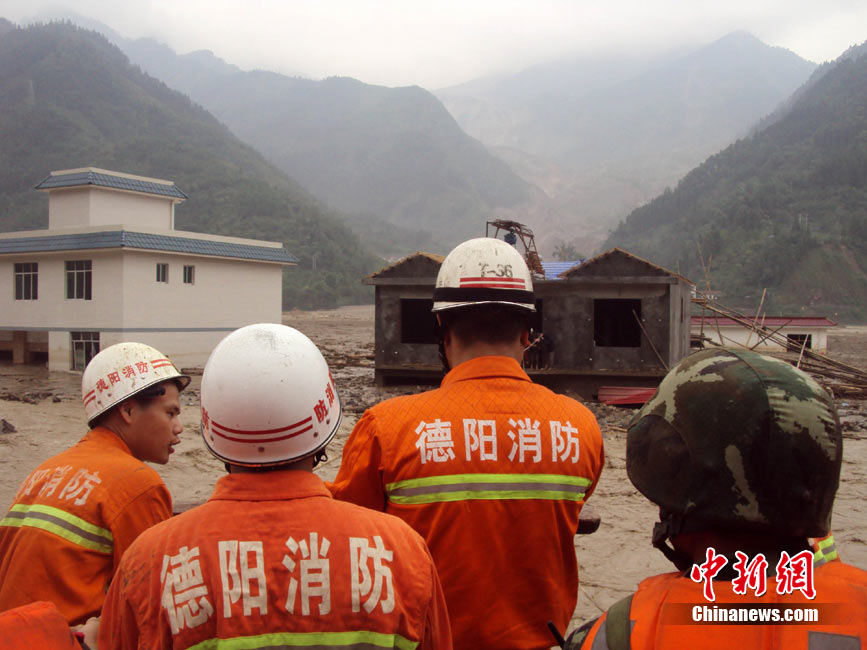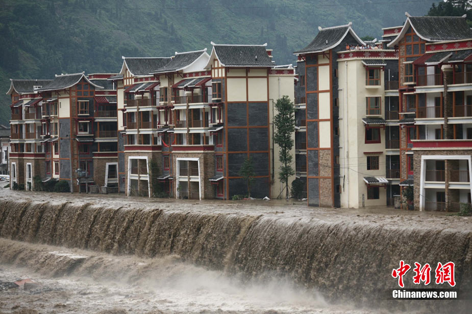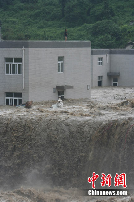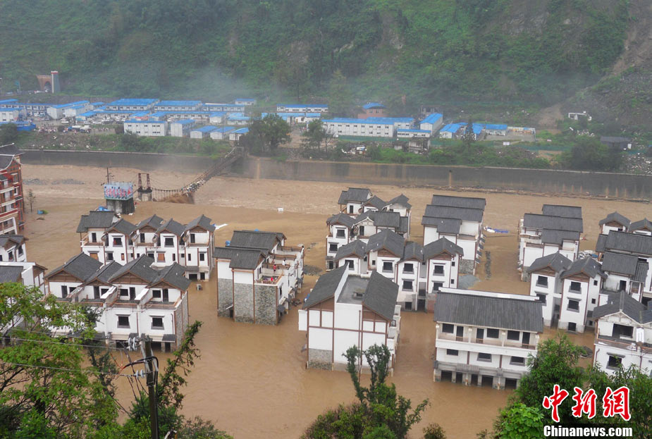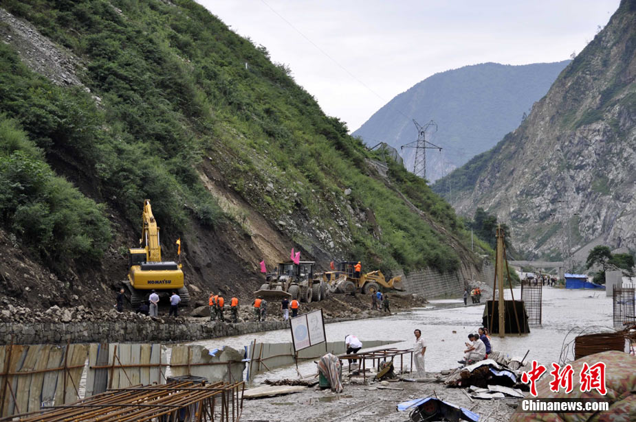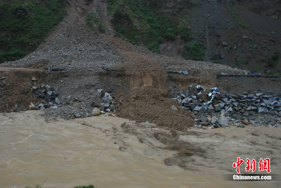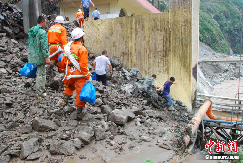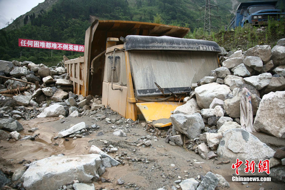 8月14日凌晨,連續(xù)強(qiáng)降雨引發(fā)汶川境內(nèi)映秀鎮(zhèn)、漩口鎮(zhèn)、銀杏鄉(xiāng)、三江鄉(xiāng)等鄉(xiāng)鎮(zhèn)發(fā)生多處泥石流災(zāi)害。其中銀杏鄉(xiāng)境內(nèi)泥石流塌方量高達(dá)6萬(wàn)立方米,流經(jīng)該鄉(xiāng)的岷江也因泥石流阻斷,正在形成堰塞湖;映秀鎮(zhèn)板房醫(yī)院被泥石流沖毀。中新社發(fā) 薛升玉 攝