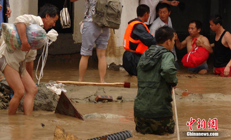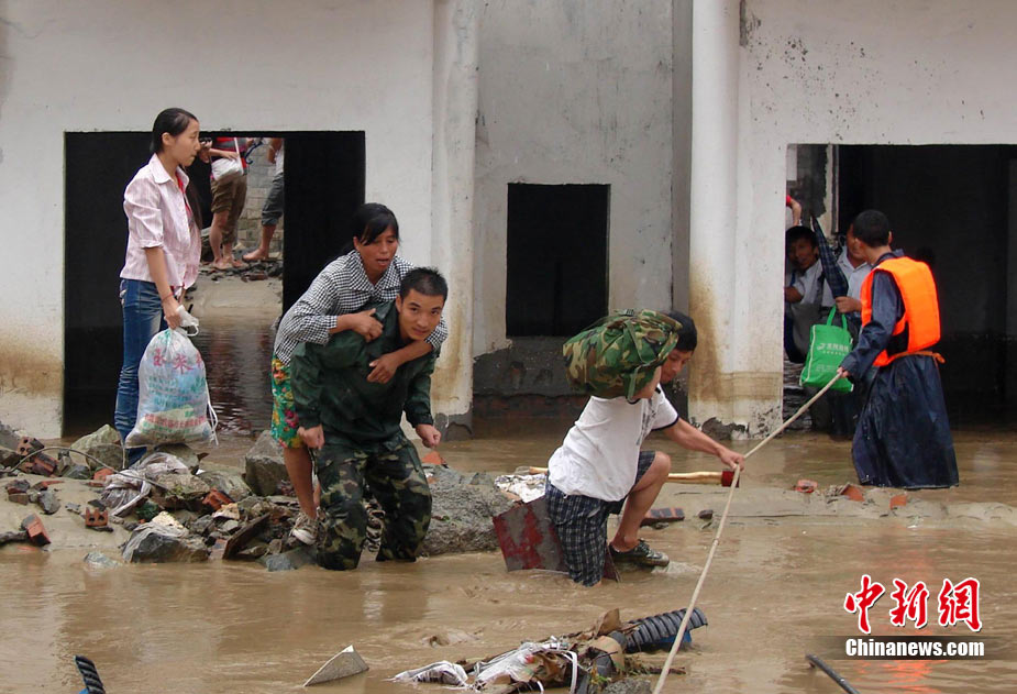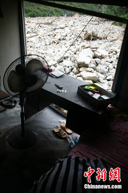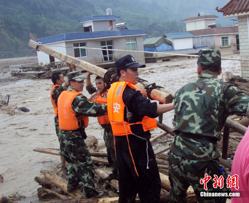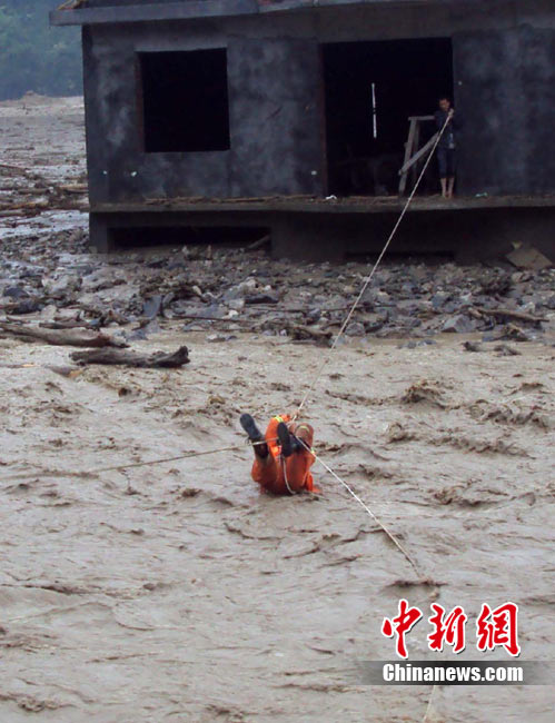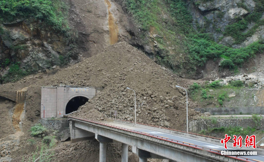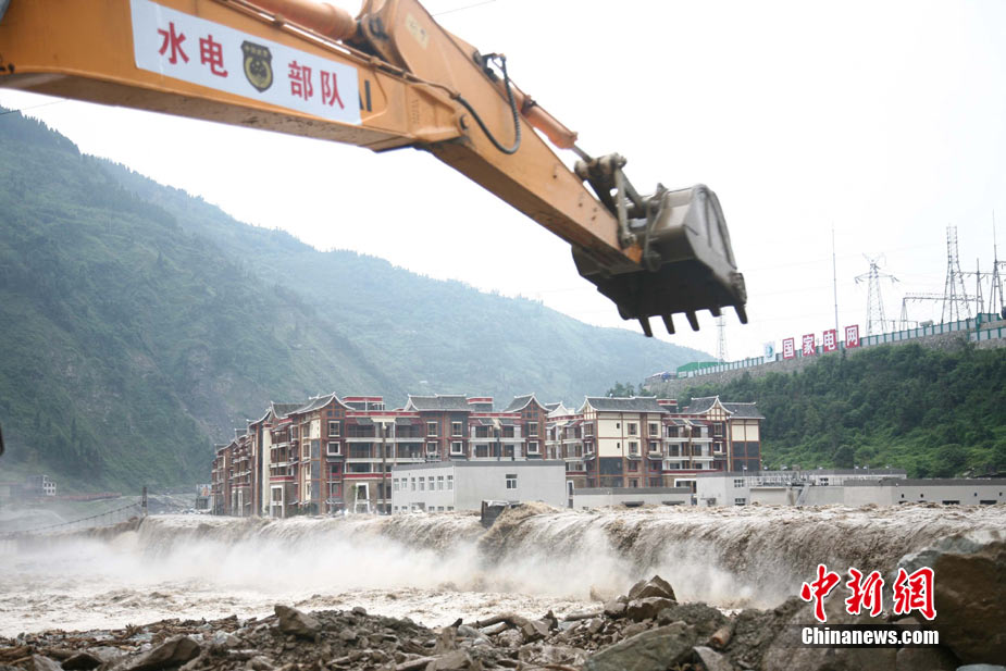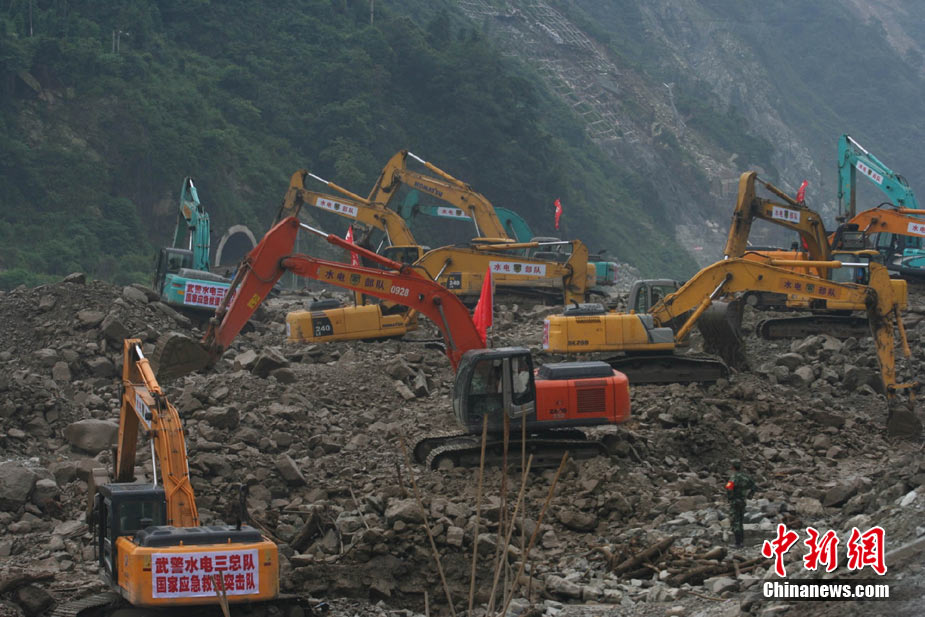 8月14日凌晨,連續(xù)強(qiáng)降雨引發(fā)汶川境內(nèi)映秀鎮(zhèn)、漩口鎮(zhèn)、銀杏鄉(xiāng)、三江鄉(xiāng)等鄉(xiāng)鎮(zhèn)發(fā)生多處泥石流災(zāi)害。其中銀杏鄉(xiāng)境內(nèi)泥石流塌方量高達(dá)6萬(wàn)立方米,流經(jīng)該鄉(xiāng)的岷江也因泥石流阻斷,正在形成堰塞湖;映秀鎮(zhèn)板房醫(yī)院被泥石流沖毀。中新社發(fā) 薛升玉 攝