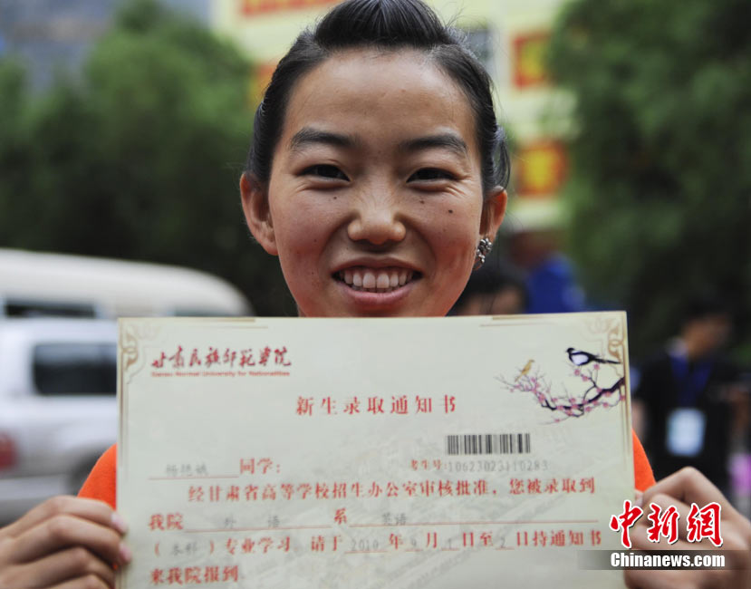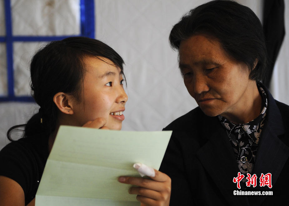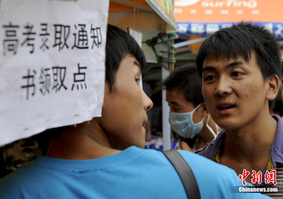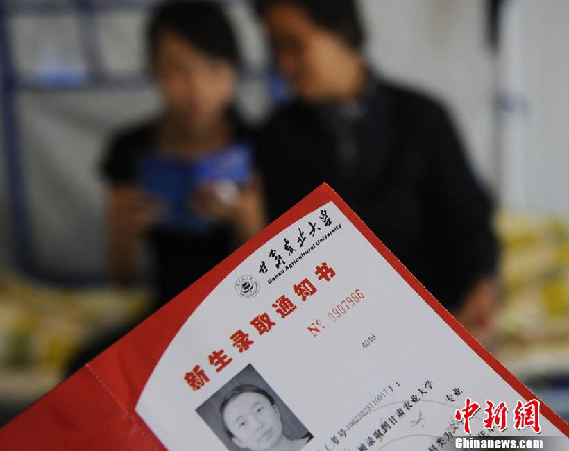 8月14日,甘肅舟曲災(zāi)區(qū)的高考錄取通知書正在發(fā)放過程中,學(xué)生們接過火紅色的錄取通知書信封,眼里有藏不住的笑意。然而,有一些通知書卻永遠(yuǎn)無(wú)法發(fā)出了。截至上午10點(diǎn)30分,舟曲一中收發(fā)室當(dāng)天共發(fā)出7份錄取通知書,還有30多封正等待領(lǐng)取。中新社發(fā) 廖攀 攝