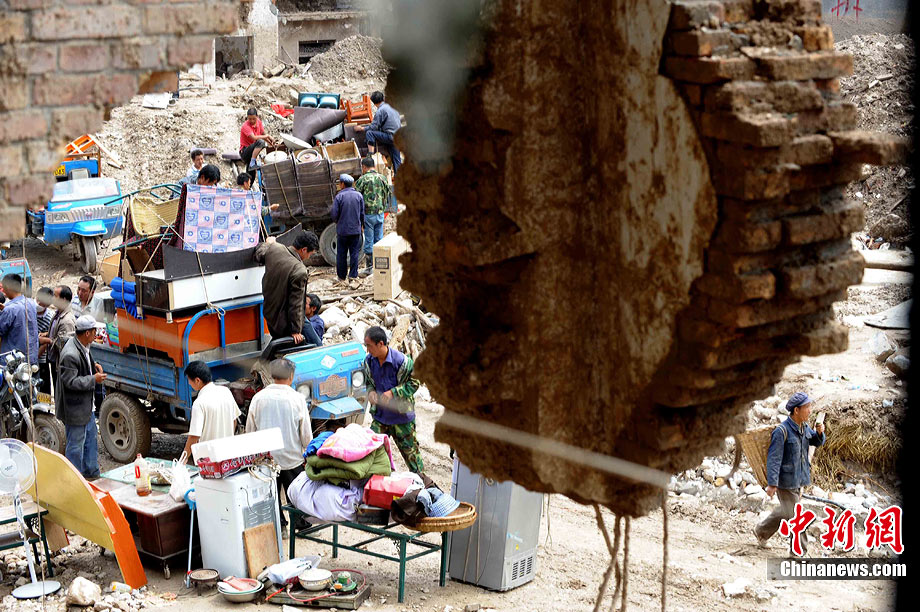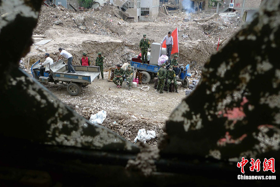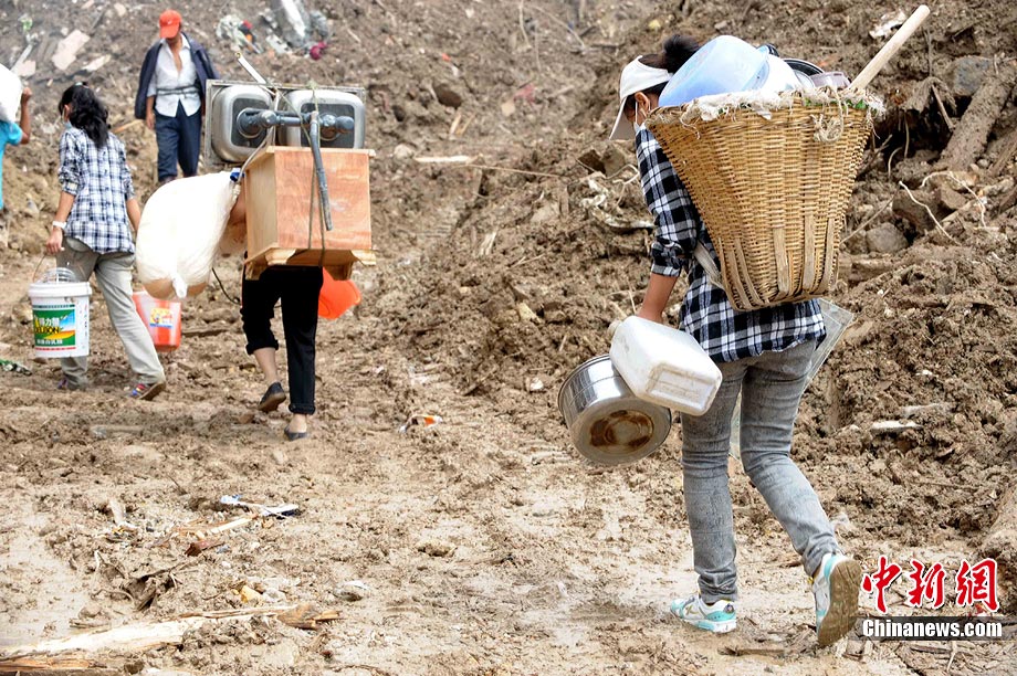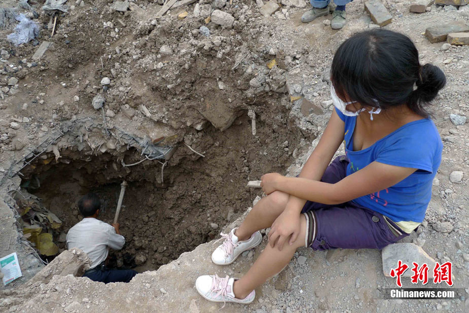 8月16日,舟曲特大泥石流發(fā)生后第9天,一些罹難者的家屬仍然在泥沙中不懈地挖掘,尋找親人的遺體。圖為何繽芬與舅舅一同在廢墟里搜尋。中新社發(fā) 陳文 攝