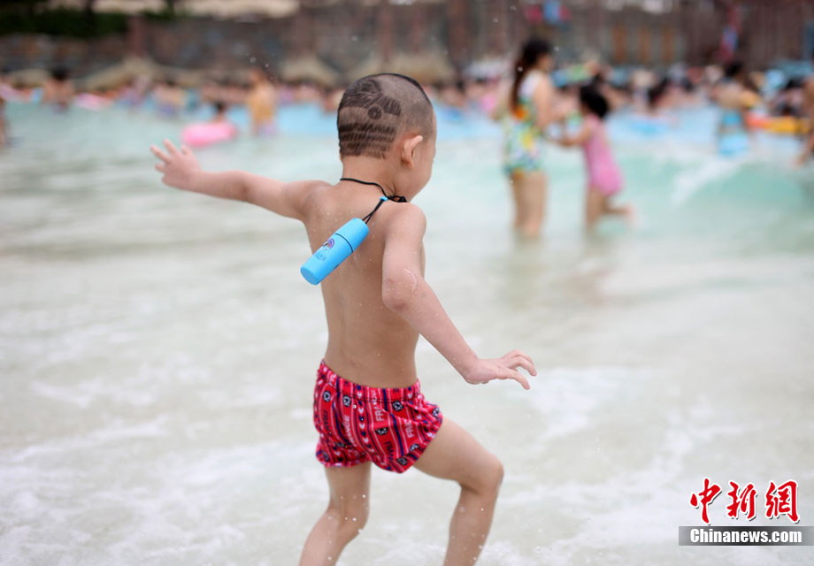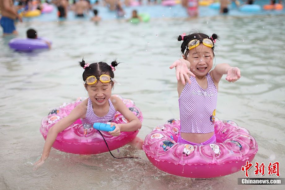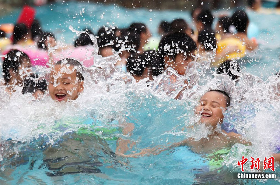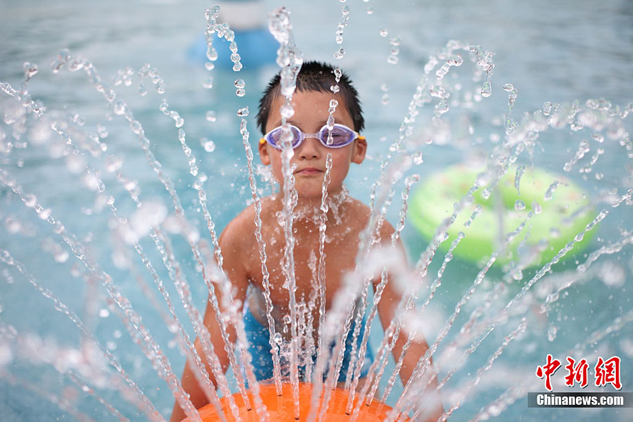 8月19日,重慶再發(fā)高溫橙色預(yù)警,預(yù)計(jì)23日以前該市將連晴高溫。為尋涼爽,一小孩趴在噴水孔附近感受水噴全身的清涼。劉函冉 攝