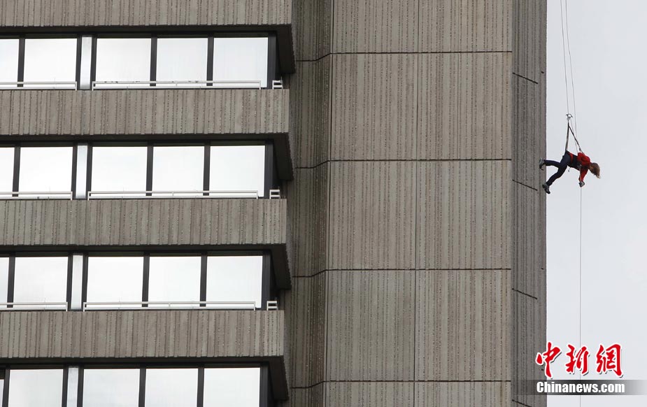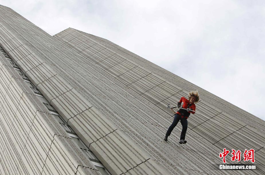 8月19日,德國(guó)視障滑雪運(yùn)動(dòng)員、殘奧會(huì)越野滑雪比賽金牌得主瓦瑞那·本特勒在德國(guó)南部城市慕尼黑參加“高樓漫步”活動(dòng)。