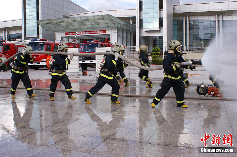 8月19日,福建省寧德市公安消防支隊在寧德會展中心舉行大跨度大空間建筑滅火救援演練,來自基層消防中隊的近30名指揮骨干現(xiàn)場觀摩了演練。演練中,56名參演官兵展示了火場偵察、救生、警戒、破拆、排煙、滅火等11個滅火救援項目,提高了部隊處置建筑物火災(zāi)事故的應(yīng)急攻堅能力。唐海波 攝