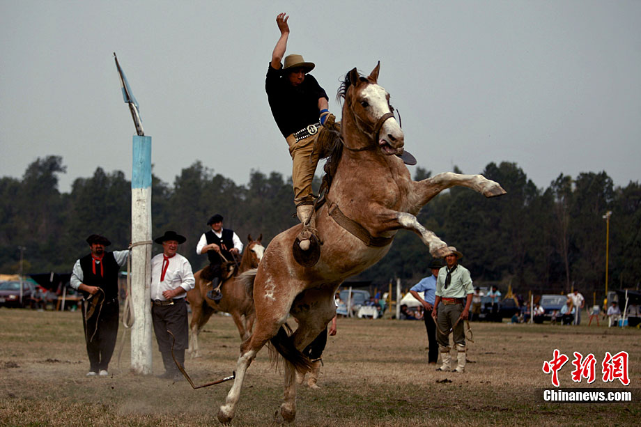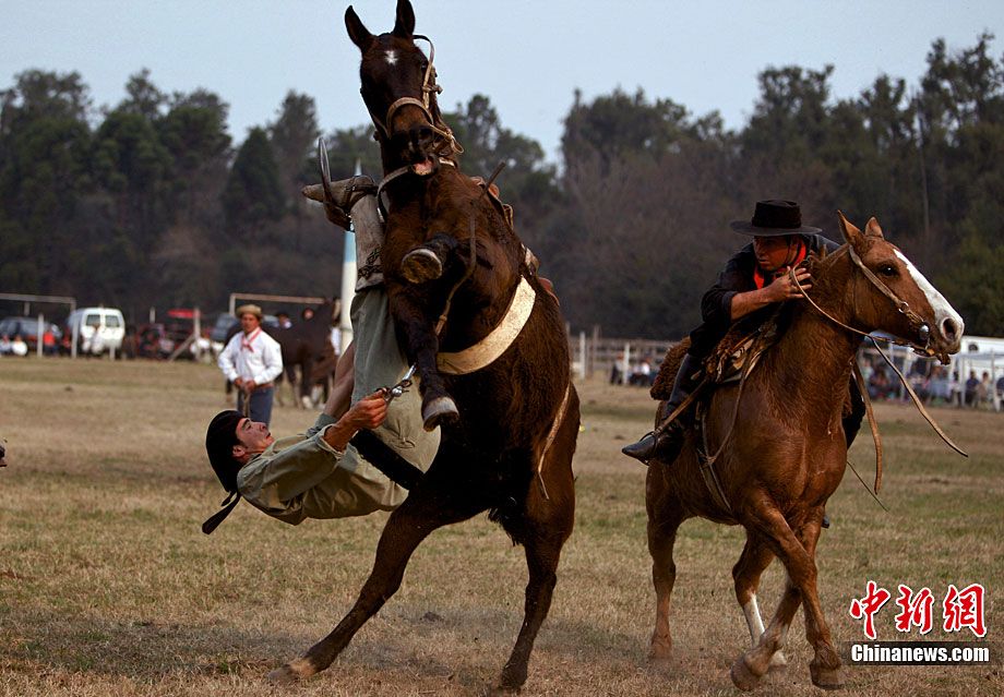 阿根廷高喬民俗節(jié)上的驚險(xiǎn)馬術(shù)表演