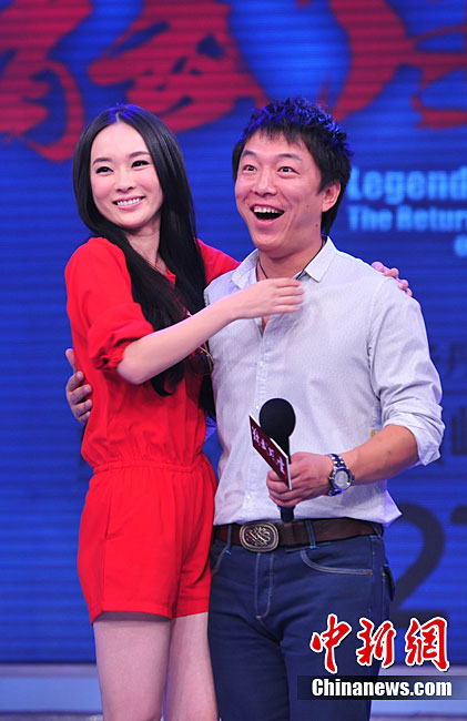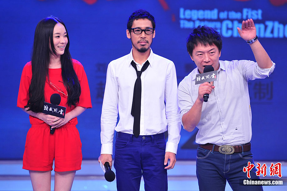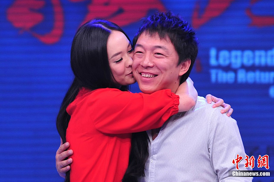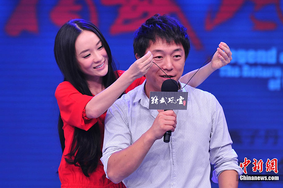 8月26日,影片《精武風云·陳真》在北京舉行終極版預告片發(fā)布會,演員黃渤、霍思燕、木幡龍紛紛亮相。圖為霍思燕在現(xiàn)場激情擁吻黃渤,讓“影帝”驚喜不已,現(xiàn)場一片驚呼。中新社記者 李學仕 攝