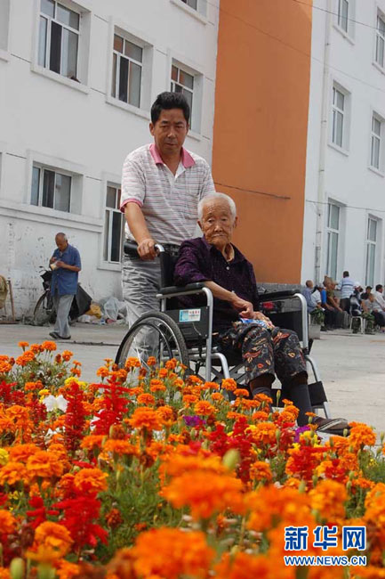 9月1日,在黑龍江省東寧縣社會(huì)敬老院,李鳳云老人在義子高自祥的照料下散步。據(jù)李鳳云老人講述,她原名李壽段,1922年出生于朝鮮平壤一個(gè)窮苦農(nóng)民家庭,19歲那年為治療母親重病賣(mài)身日本“工廠”,隨日本人來(lái)到黑龍江省阿城市,后被日本兵抓到東寧要塞的“慰安所”內(nèi),直至日本投降,才逃出苦海,在東寧縣大肚川鎮(zhèn)隱瞞身份居住下來(lái)。圖片來(lái)源:新華網(wǎng)