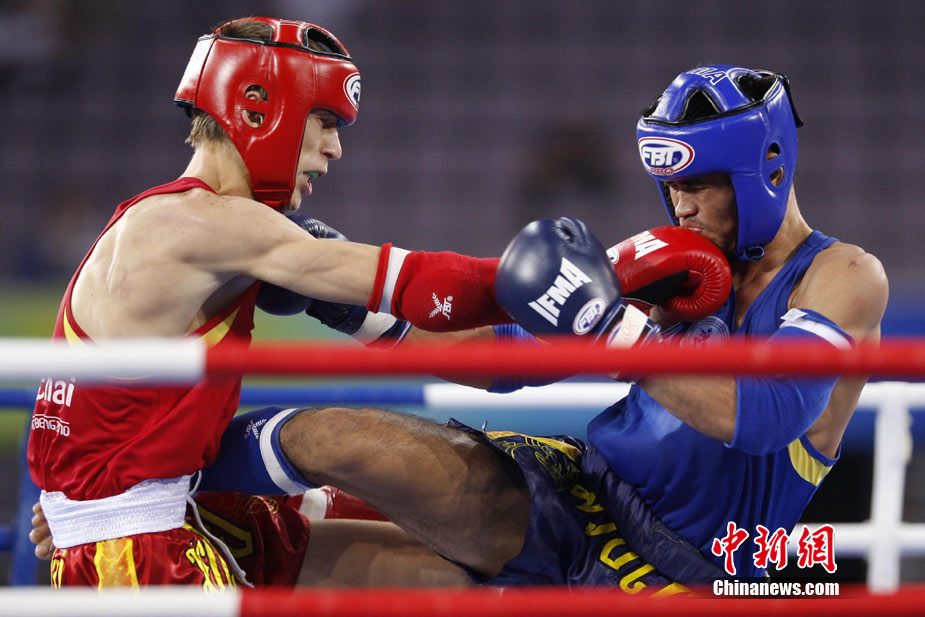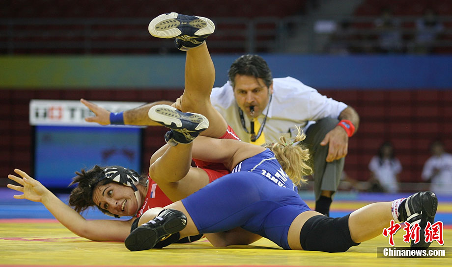 9月1日,2010年北京首屆世界武搏運動會空手道項目在北京科技大學(xué)體育館結(jié)束了全部爭奪。圖為在女子-68公斤級決賽中,來自美國的墨菲(Murphy)(圖)被法國選手泛亞特(Fanjat)擊中面部,最終不敵對手屈居第二。中新社記者 富田 攝