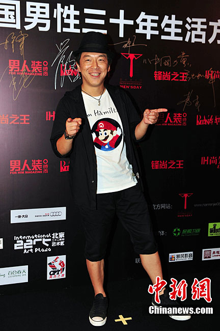 9月2日晚,作為2010“8.3國際男人節(jié)”的重要組成部分,也是高潮環(huán)節(jié)的“首屆中國男性三十年生活方式巡禮”,在北京舉行。數(shù)十位活躍在商業(yè)、傳媒、影視、音樂、文化、設(shè)計、體育及時尚等領(lǐng)域的精英人士出席了活動。圖為黃渤嘻哈裝扮亮相。中新社記者 李學(xué)仕 攝