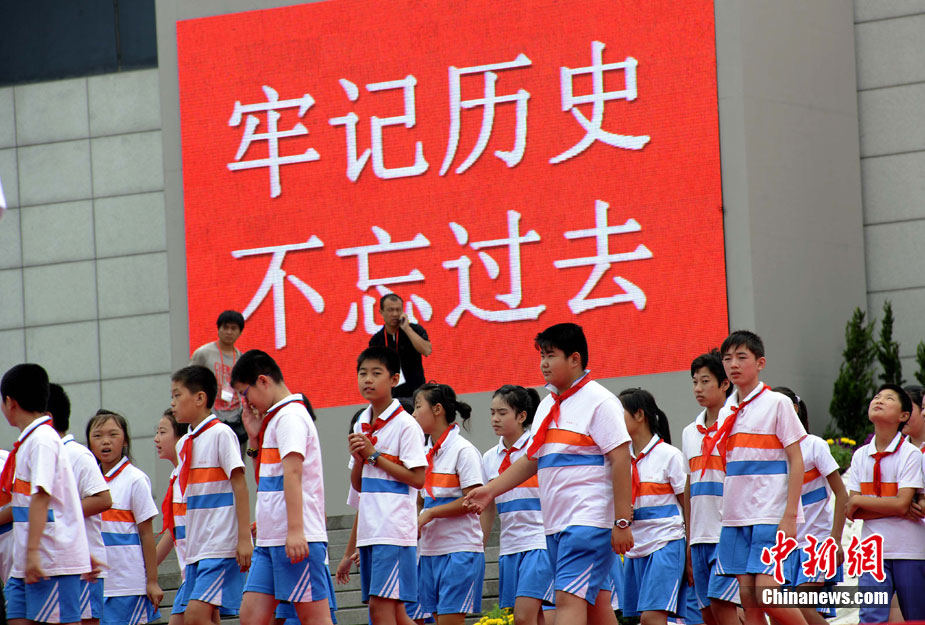 9月3日,北京的小學(xué)生到北京盧溝橋畔的中國人民抗日戰(zhàn)爭紀(jì)念館參觀,緬懷英烈。9月3日是中國人民抗日戰(zhàn)爭勝利暨世界反法西斯戰(zhàn)爭勝利65周年紀(jì)念日。中國各地舉辦各種紀(jì)念活動,以多種形式回望那段血雨腥風(fēng)的歷史,緬懷抗日先烈,從歷史中汲取面向未來的力量。中新社記者 劉震 攝