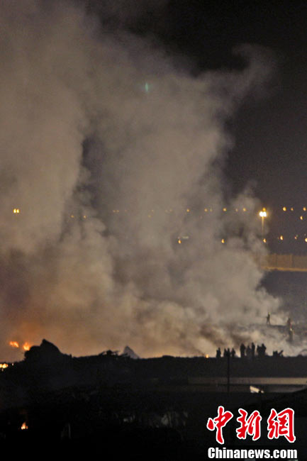 阿拉伯聯(lián)合酋長國民航總局3日發(fā)表聲明說,美國聯(lián)合包裹服務(wù)公司(UPS)一架波音747-400貨機(jī)當(dāng)天晚上在迪拜墜毀,機(jī)上兩名飛行員喪生。圖為墜機(jī)現(xiàn)場。