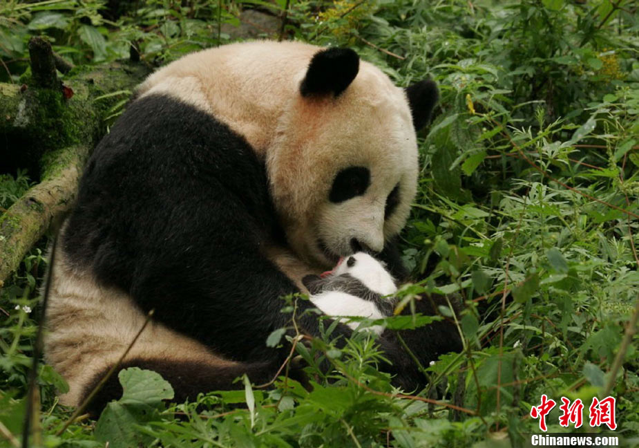 9月4日從臥龍中國(guó)保護(hù)大熊貓研究中心獲悉,全球首只在野化培訓(xùn)基地誕生的大熊貓寶寶----“草草”的幼仔已滿(mǎn)月。在8月3日降生于臥龍“核桃坪”野化培訓(xùn)基地后的一個(gè)月里,科研人員按預(yù)先計(jì)劃順利開(kāi)展了相關(guān)研究工作,讓“草草”帶著寶寶先在一個(gè)條件相對(duì)簡(jiǎn)單的環(huán)境中生活,目前,幼仔生長(zhǎng)狀況良好,從出生時(shí)的205克增長(zhǎng)到了1235克,身體健康,活力強(qiáng)。中新社發(fā) 曾昌霞 攝