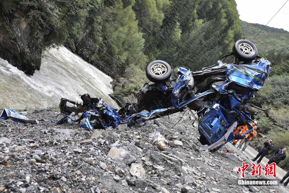 9月5日,四川馬爾康梭磨鄉(xiāng)發(fā)生一起車禍,導致兩輛車墜入河中,目前,其中的一輛面包車已被打撈上岸,車內(nèi)有3人喪生,另一輛皮卡車還在搜尋之中,事故原因正在進一步調(diào)查中。圖為面包車被打撈上岸。中新社發(fā) 沈消軒 攝