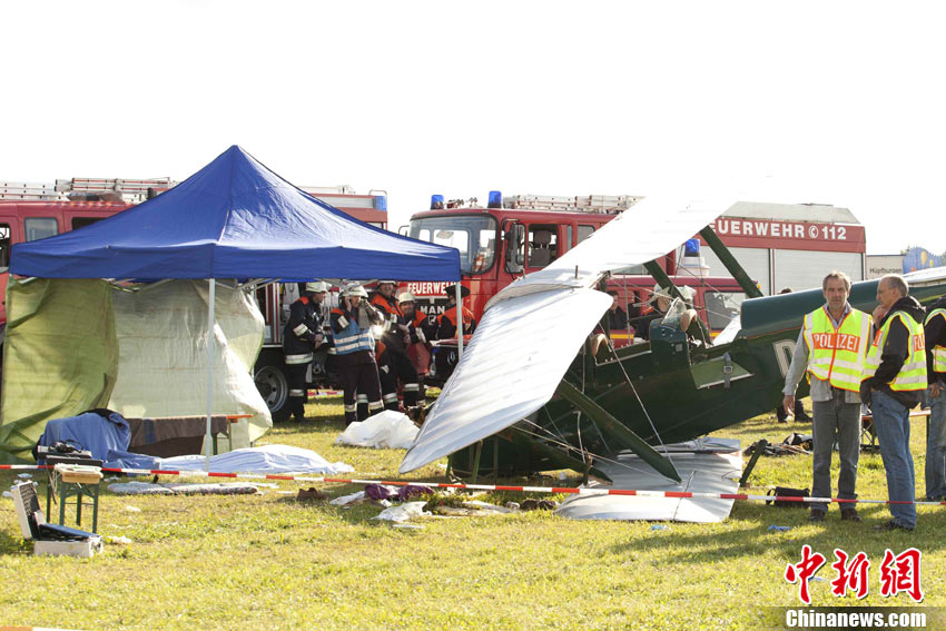 德國南部5日舉行的一次飛行表演發(fā)生意外事故,一架由螺旋槳推動的小型飛機在起飛時突然失控,墜入觀眾席,造成1人死亡,38人受傷。飛行員則安然無恙。