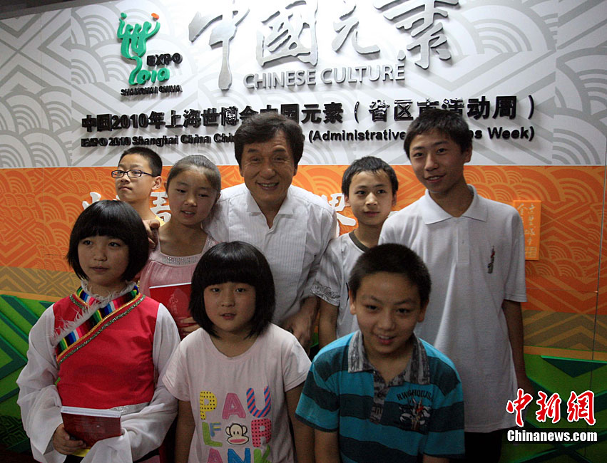 9月11日,上海世博會中國元素迎來甘肅省活動周,上海世博會形象大使、國際影星成龍現(xiàn)身開幕儀式,并獻(xiàn)唱一曲《風(fēng)雨同舟》問候舟曲。中新社記者 潘索菲 攝
