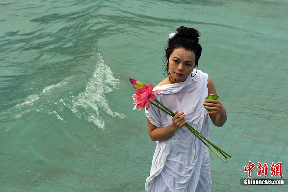 9月11日,漂浮于水上時而禪坐、時而圍繞水中漂浮的古琴緩緩起舞,伴著古琴樂,池水不時變換出各種造型的“水墨畫”,一種前沿新藝術形式在湖北咸寧太乙洞溫泉上演。原創(chuàng)及表演者彭子軒,提出藝術養(yǎng)生的理念,并獨創(chuàng)以子軒內練為基礎的藝術漂浮(包含藝術漂浮舞蹈及藝術漂浮瑜伽),被譽為中國古典花樣游泳。毛建軍 攝