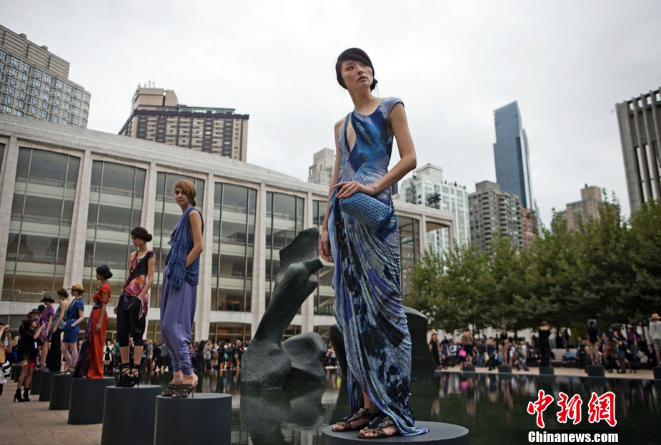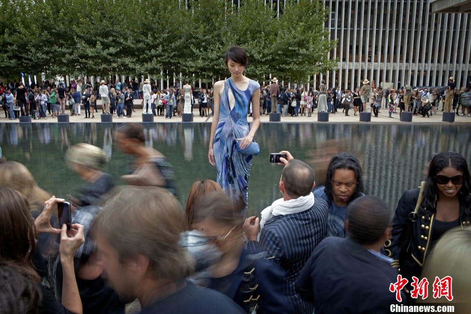 9月12日,美國紐約時(shí)裝周上演了一場“湖邊時(shí)裝秀”。