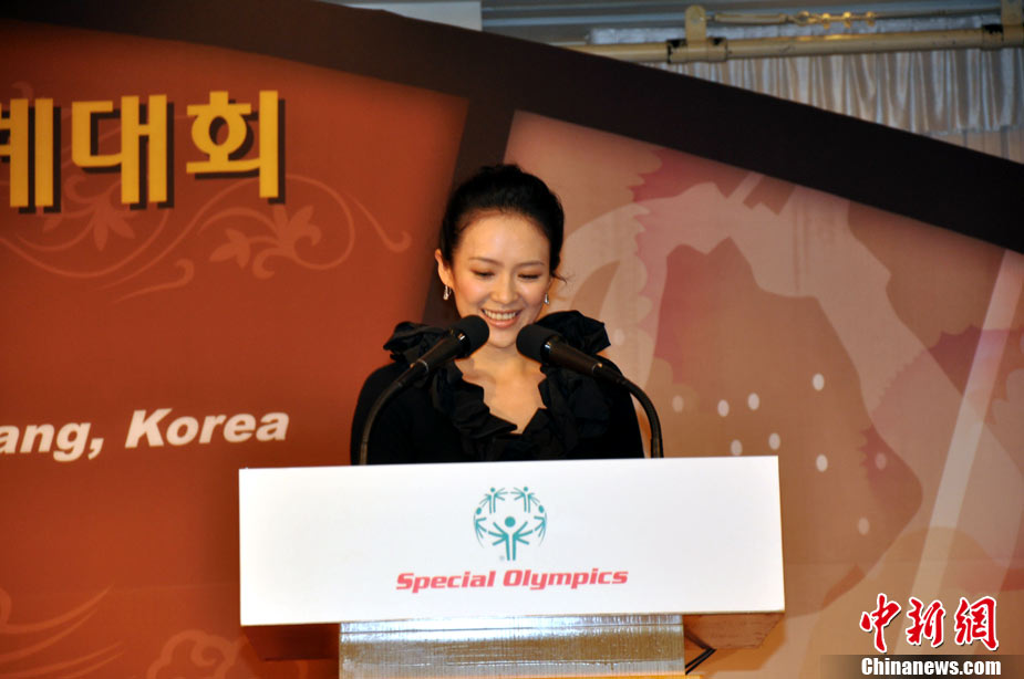 當(dāng)?shù)貢r(shí)間9月15日上午,國際特奧會(huì)在首爾舉辦“2013年特殊奧林匹克冬季運(yùn)動(dòng)會(huì)”新聞發(fā)布會(huì)和簽字儀式,并宣布韓國平昌將成為本屆冬季特奧會(huì)的主辦地。特奧全球形象大使、國際影星章子怡出席發(fā)布會(huì),身體力行關(guān)愛智障人士,為他們的表演和精神鼓勁加油。美國加州州長、前動(dòng)作巨星阿諾德•施瓦辛格出席該活動(dòng),并與章子怡等共同見證特奧的啟動(dòng)。圖為章子怡為智障兒童加油打氣。