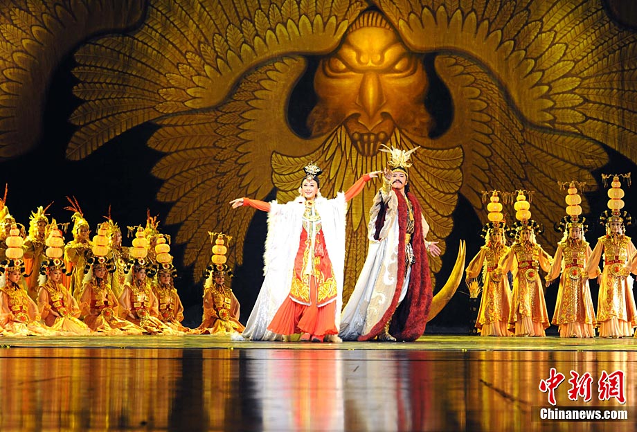 9月16日晚,2010華僑華人創(chuàng)業(yè)發(fā)展洽談會(huì)在武漢琴臺(tái)大劇院舉辦專(zhuān)場(chǎng)文藝演出,由湖北省歌劇舞劇院演出大型原創(chuàng)民族舞劇《王昭君》,其演員們的精湛演出博得與會(huì)代表們的熱烈掌聲。中新社發(fā) 張勤 攝