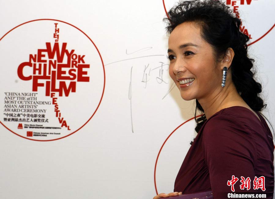 當(dāng)?shù)貢r(shí)間9月18日晚,首屆“紐約中國(guó)電影節(jié)”在紐約林肯中心舉行開幕式。圖為中國(guó)香港演員張柏芝走完紅毯后,在電影節(jié)的背景板前簽名留影。 中新社記者 孫宇挺 攝