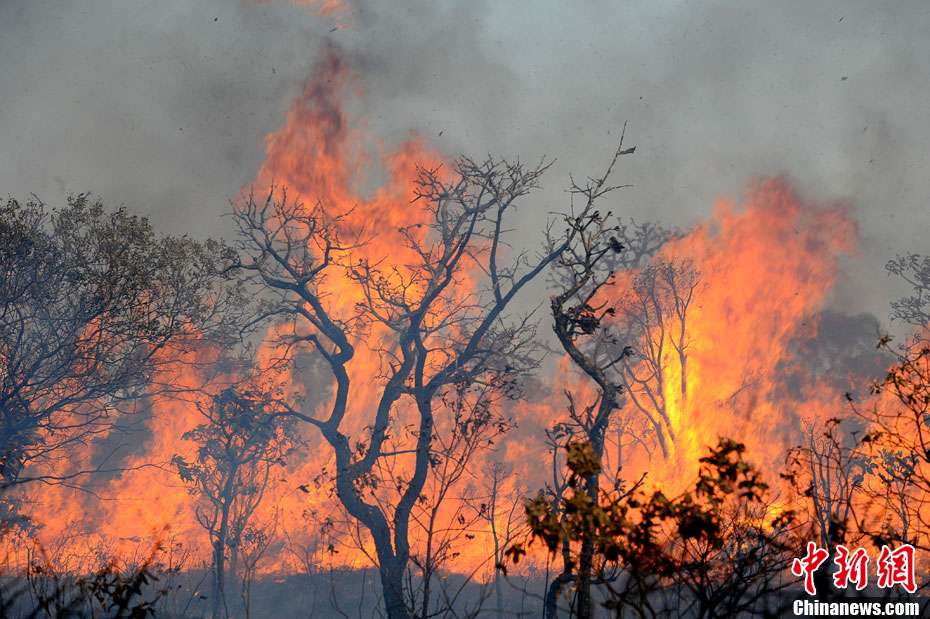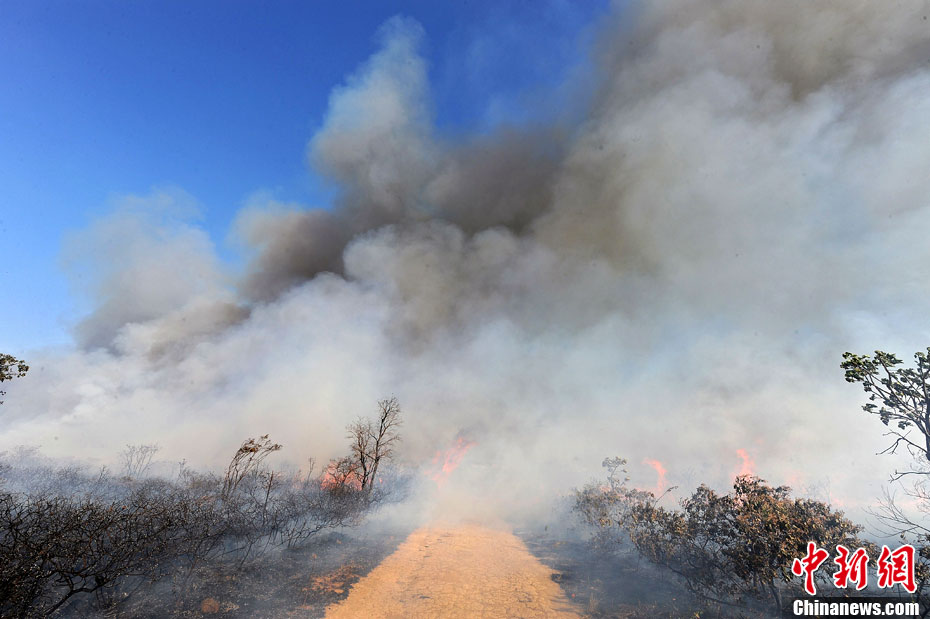 巴西首都巴西利亞附近的國家公園9月19日發(fā)生山林大火,雖然140余名消防員日夜不停地滅火,但據(jù)國家公園管理人員透露,目前火勢已經(jīng)失控。