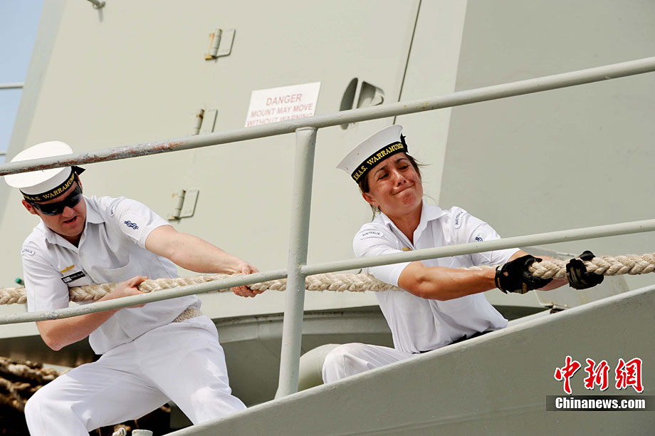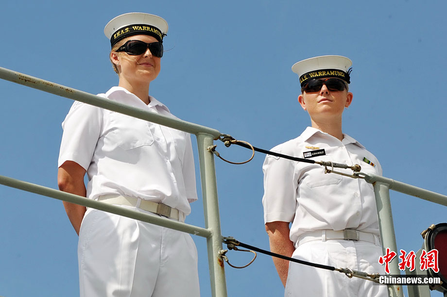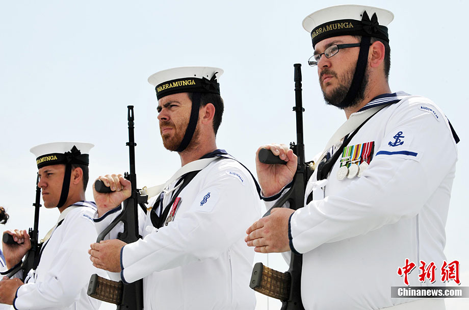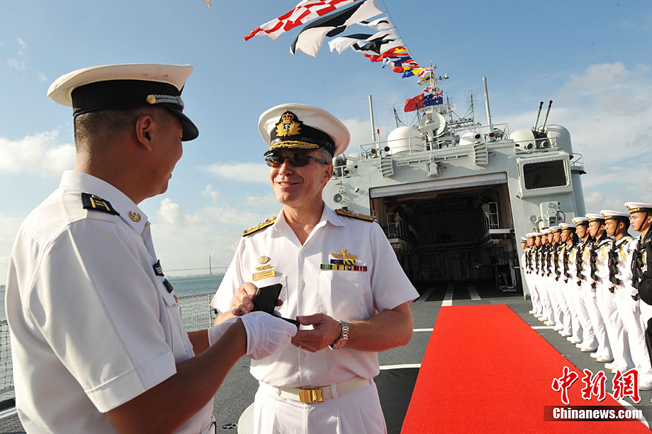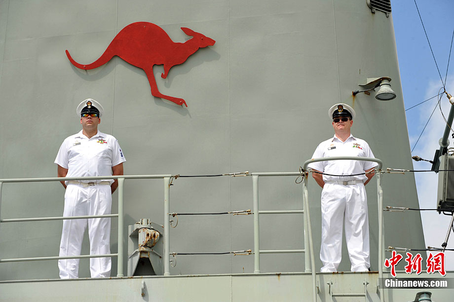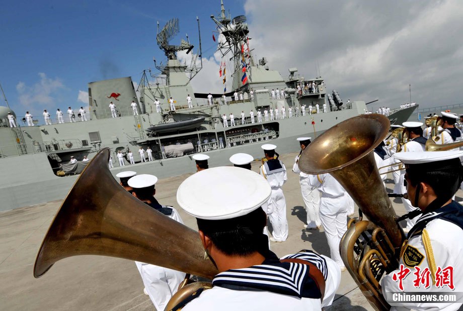 9月26日,應(yīng)中國(guó)人民解放軍海軍邀請(qǐng),澳大利亞海軍艦隊(duì)司令吉爾摩少將率海軍“瓦拉蒙加”號(hào)護(hù)衛(wèi)艦抵達(dá)湛江某軍港進(jìn)行友好訪問(wèn),南海艦隊(duì)舉行了隆重的歡迎儀式。中新社記者 陳文 攝