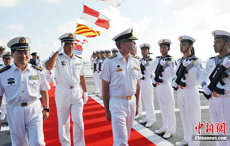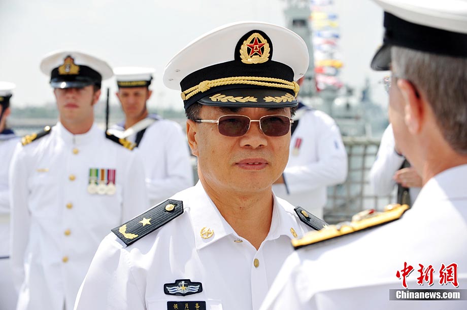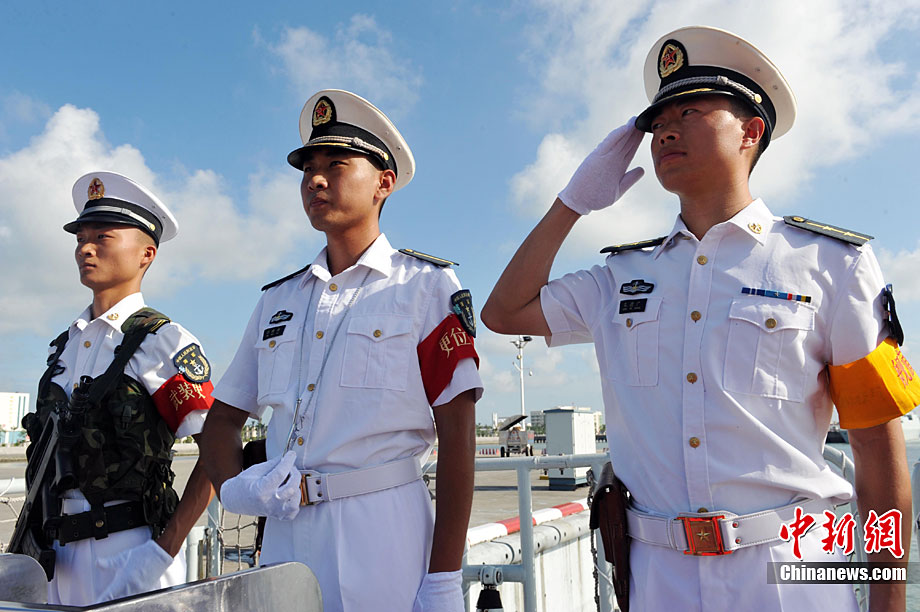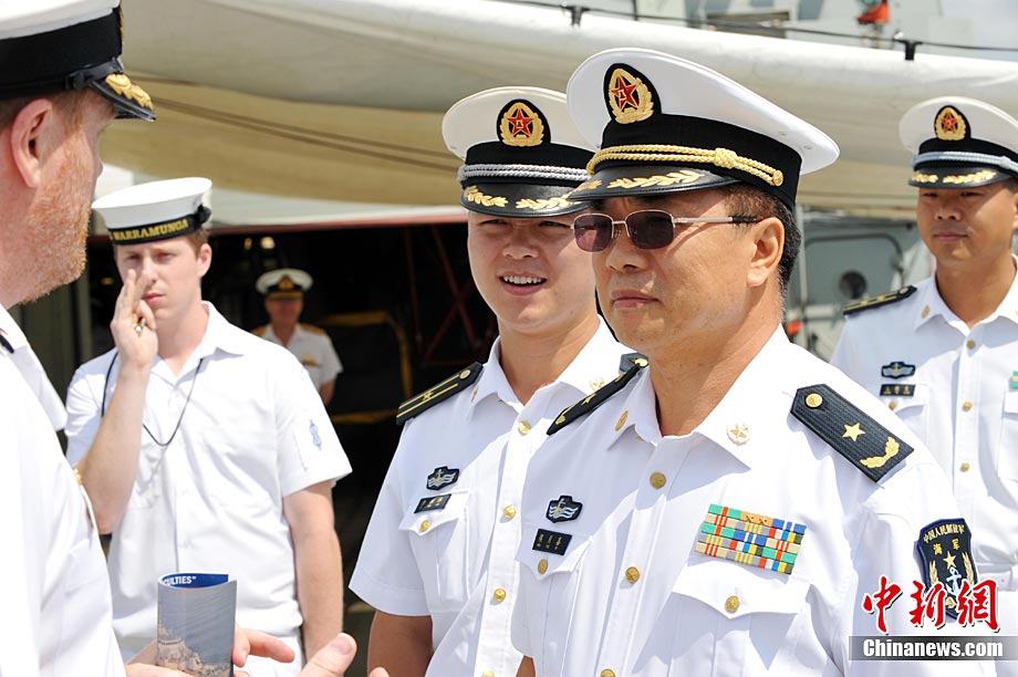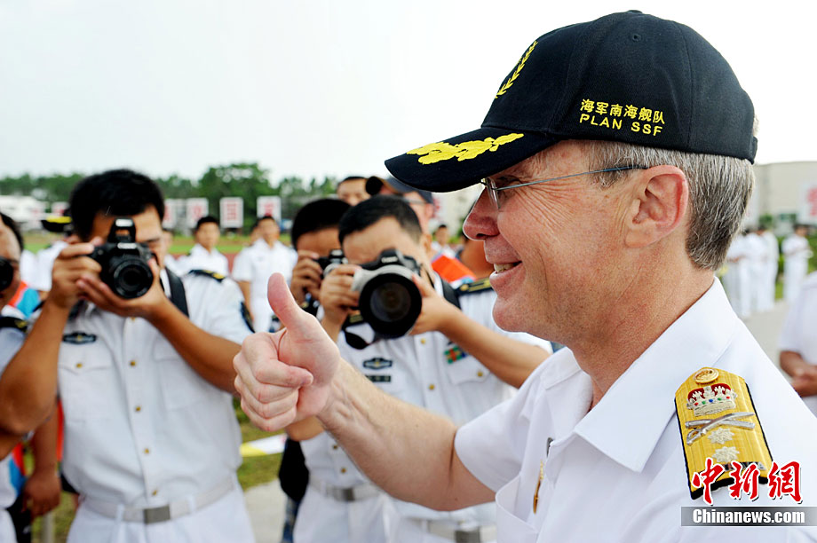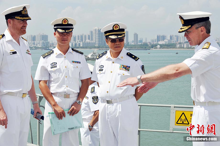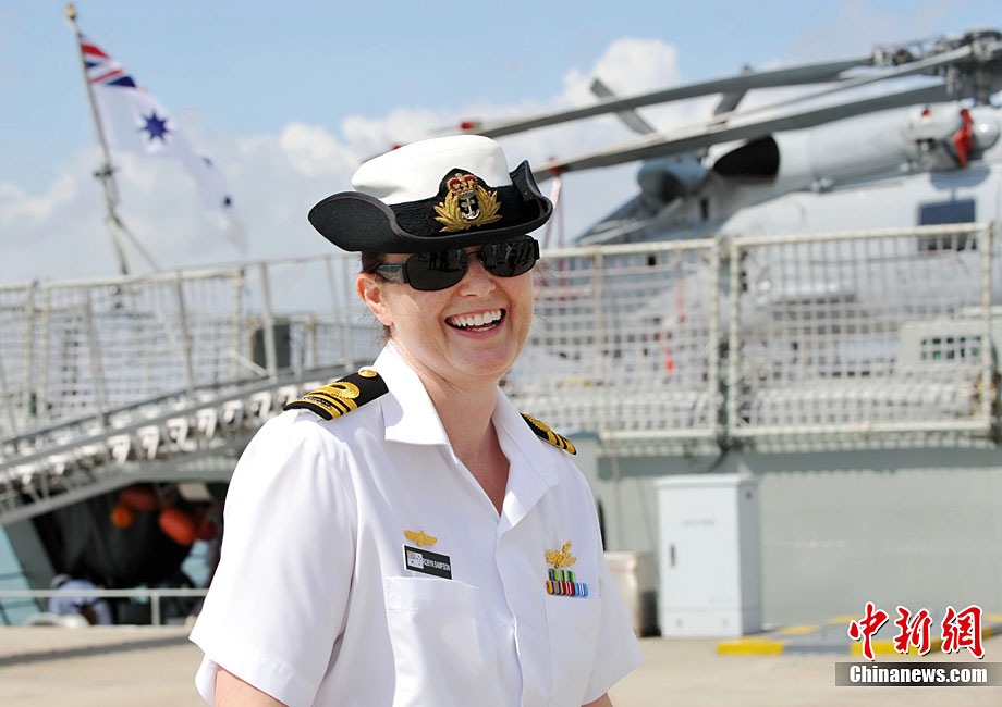 9月26日,應(yīng)中國(guó)人民解放軍海軍邀請(qǐng),澳大利亞海軍艦隊(duì)司令吉爾摩少將率海軍“瓦拉蒙加”號(hào)護(hù)衛(wèi)艦抵達(dá)湛江某軍港進(jìn)行友好訪問(wèn),南海艦隊(duì)舉行了隆重的歡迎儀式。中新社記者 陳文 攝