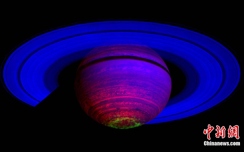 近日,卡西尼號飛船拍攝到了令人難以置信的土星北極光,科學(xué)家稱對土星極光的詳細(xì)研究可以幫助人類理解地球上的極光產(chǎn)生原理,以及磁場與最頂層大氣之間的互相作用。土星極光圖像均由卡西尼號上所搭載的可見光及紅外光譜儀(VIMS)所攝。這些新的偽色圖片展示了土星南極閃現(xiàn)出超過20小時的綠色極光,而這段時間相當(dāng)于土星的兩天。