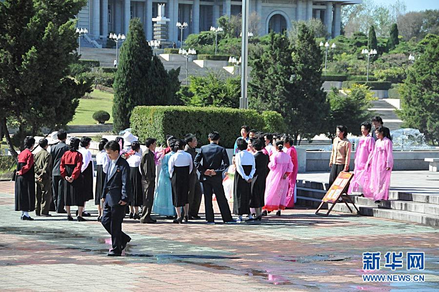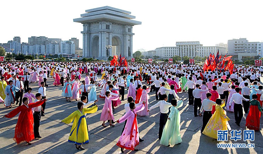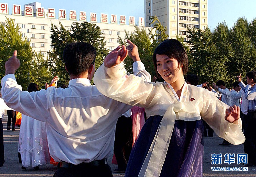9月28日,朝鮮青年學生在首都平壤舉行舞蹈集會,慶祝朝鮮勞動黨代表會議當天推舉金正日為朝鮮勞動黨總書記。圖片來源:新華網(wǎng)
